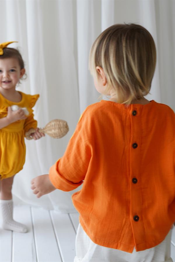 شورت شيفون كريمي + قميص موسلين برتقالي
