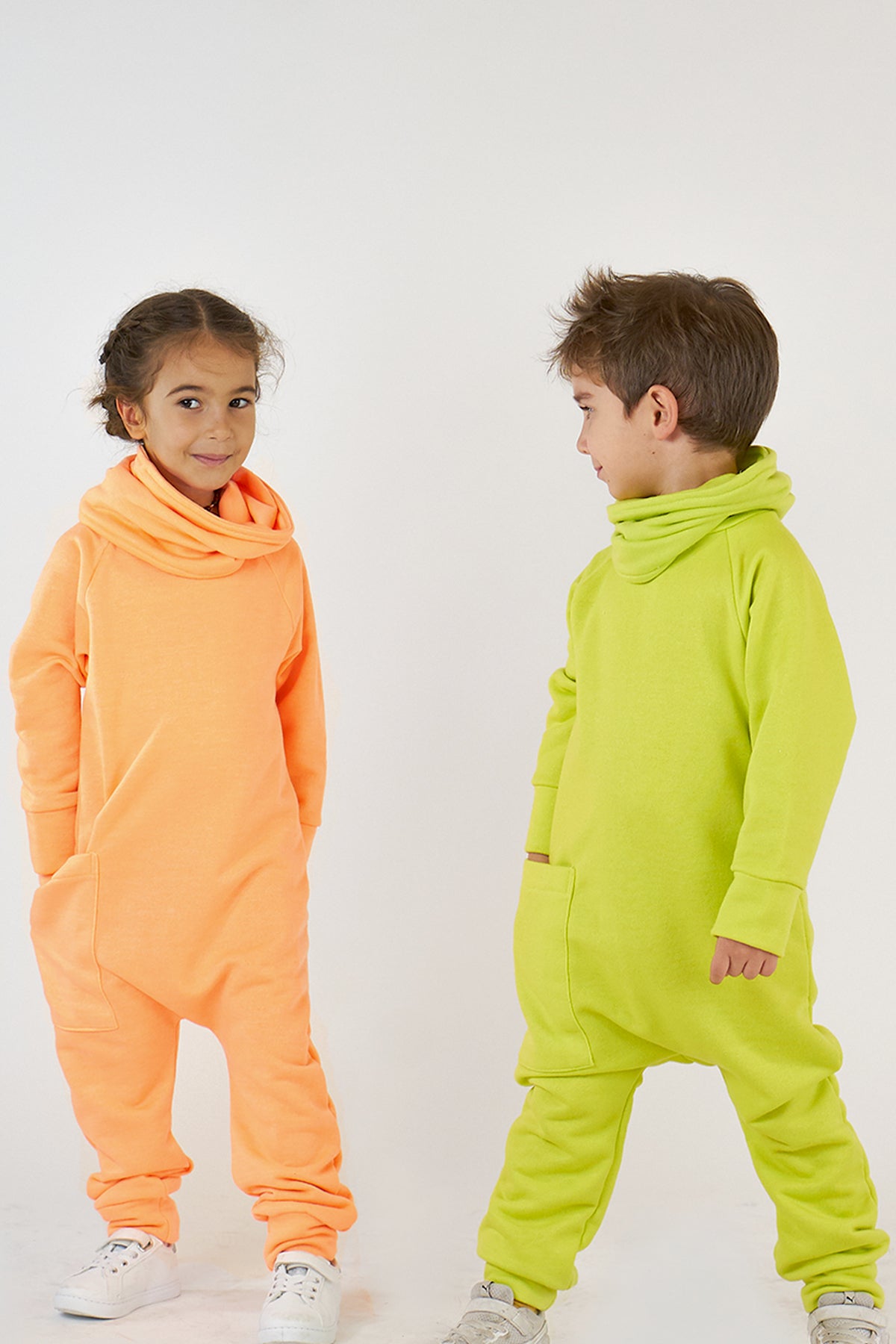 جمبسوت بسحاب خلفي بلون أخضر نيون مع طوق للرقبة