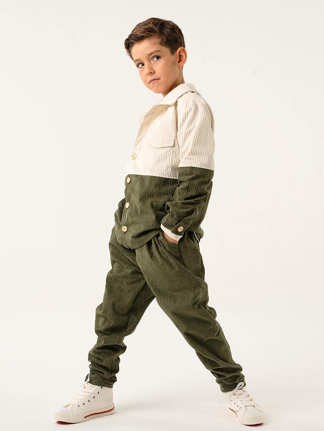 Haki Kadife Retro İkili Takım 3–10 yaş arası çocuklar için tasarlanmış bu ikili takım, yumuşak...