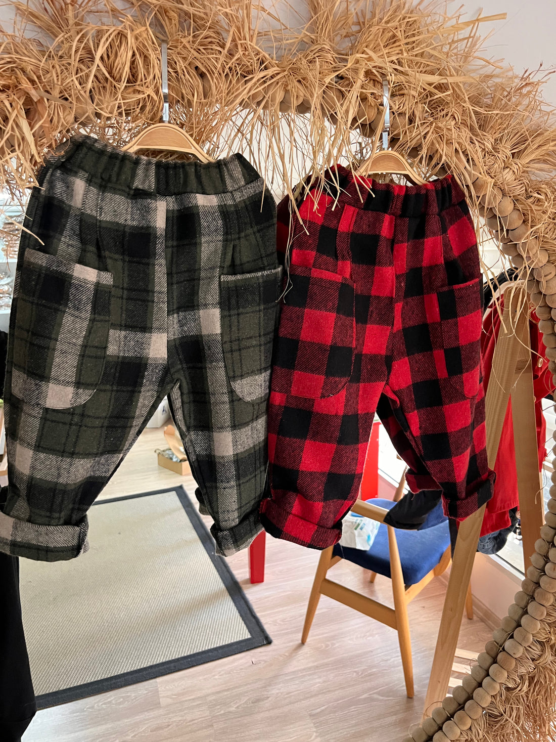2'li Paket Yumuşak Kaşe 2'li Boyfriend Pantolon Haki Ekose & Kırmızı Ekose
