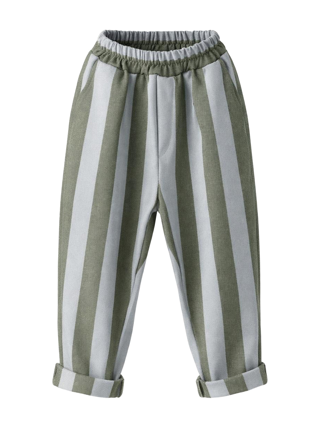 Green Striped Linen Carrot Single Trousers