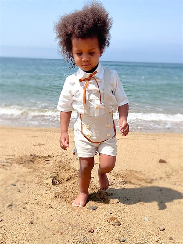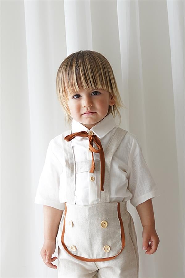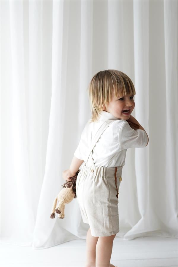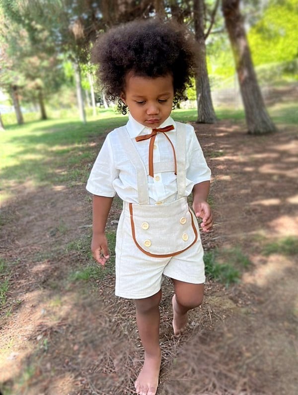 Cream Linen Shorts and Overalls + White Short Sleeve Shirt