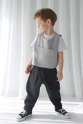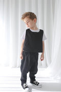 Black Linen Carrot Trousers + Black Gray Double-Sided Linen Vest