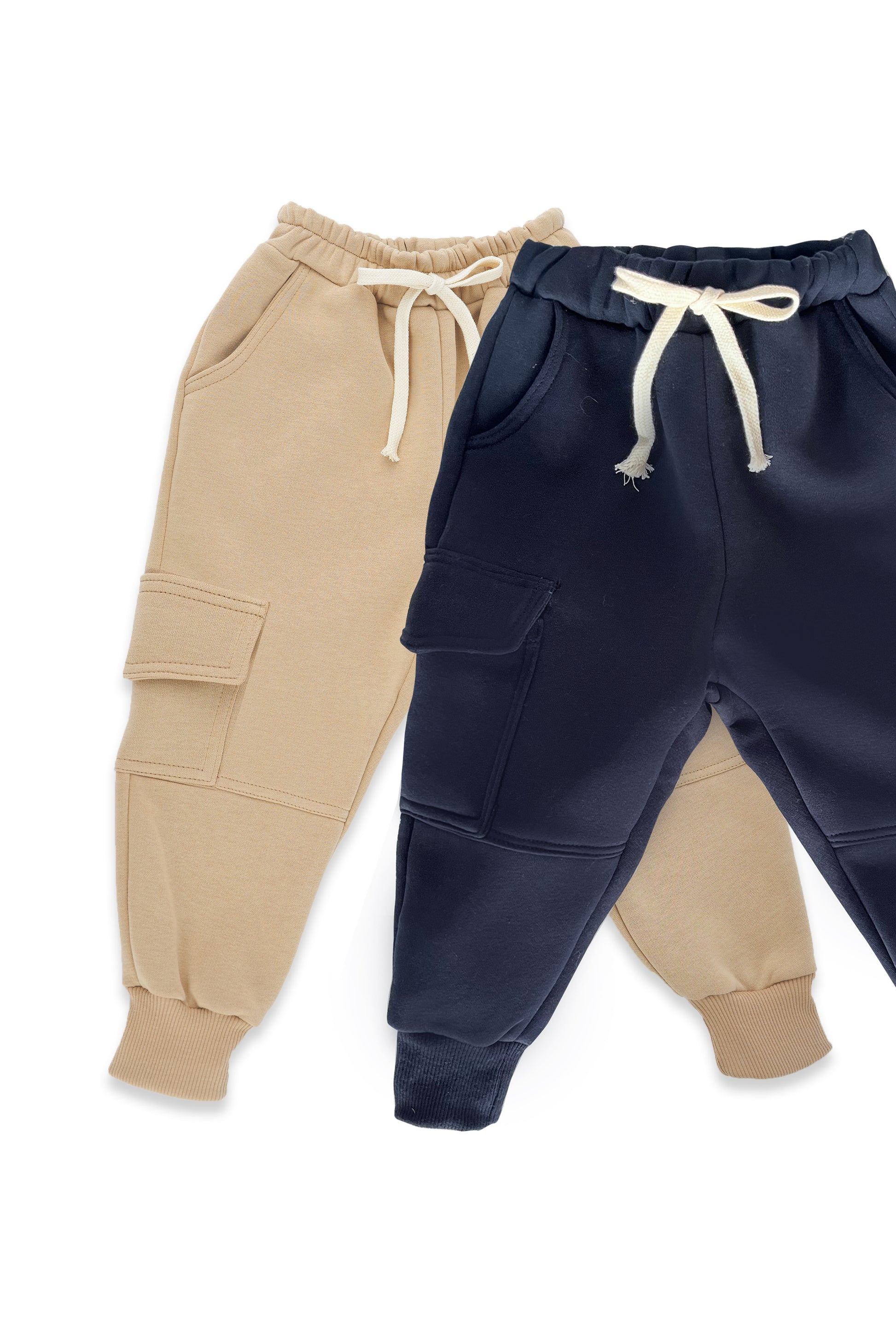 2Li Paket Erkek Çocuk Eşofman Altı 3 İplik Şardonlu (Lacivert,Vizon )