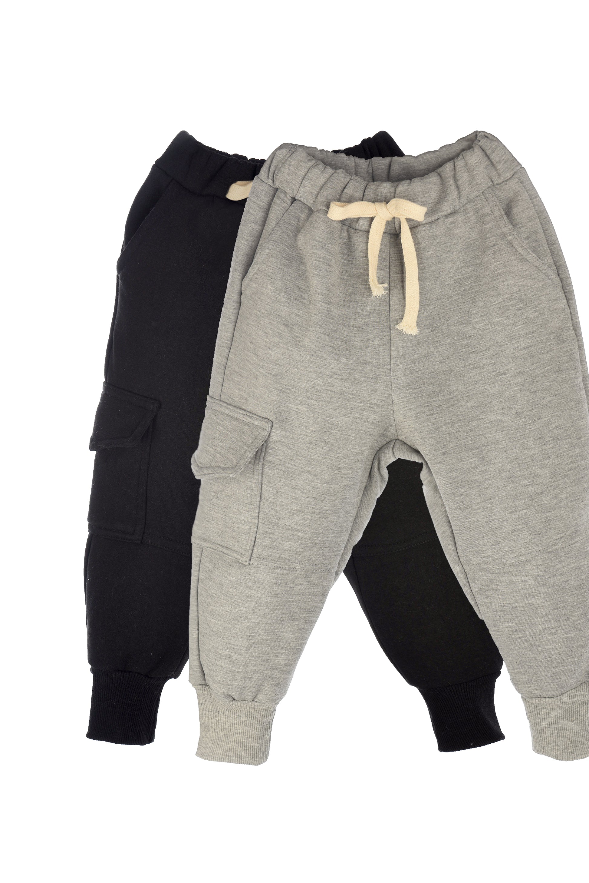 2Li Paket Erkek Çocuk Eşofman Altı 3 İplik Şardonlu (Siyah,Gri)
