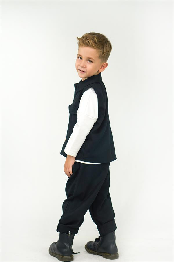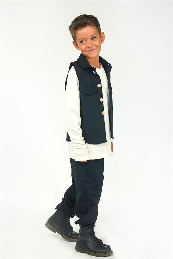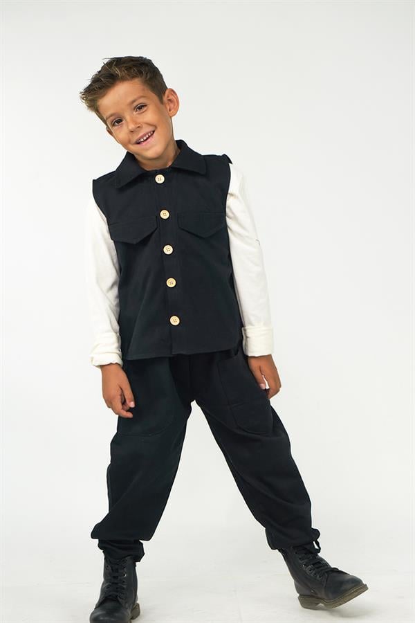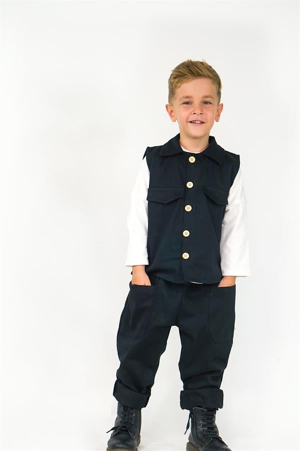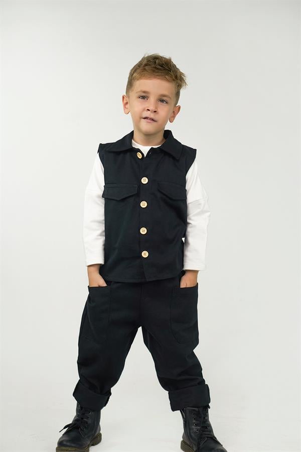 2'li Set Siyah Gabardin Spor Yelek + Siyah Gabardin Boyfriend Pantolon