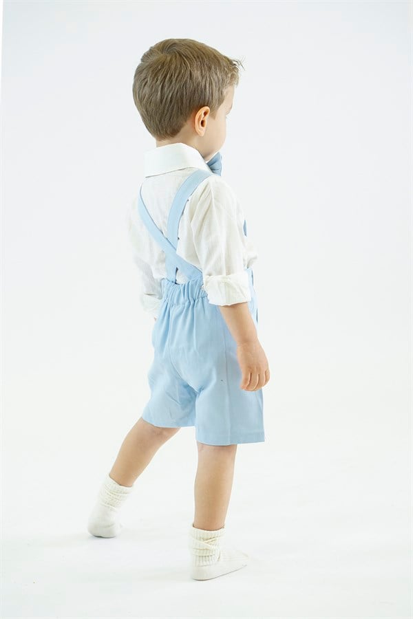 - Bebe Mavi Gabardin Şort Önü Düğmeli Salopet Takım