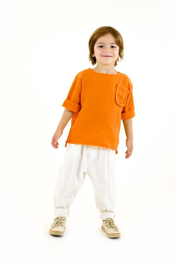 Beyaz Keten Carrot Pantolon + Turuncu Müslin Gömlek
