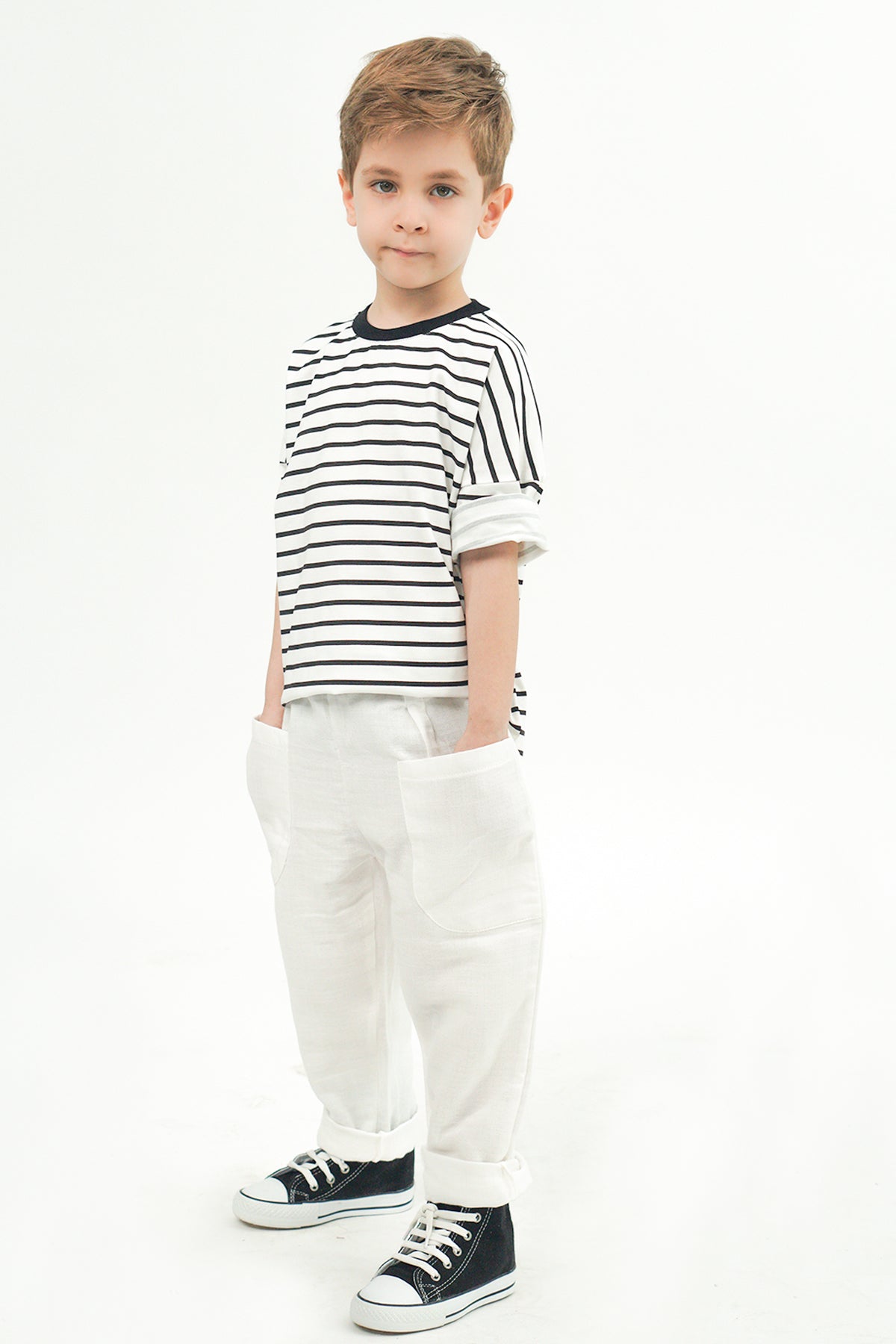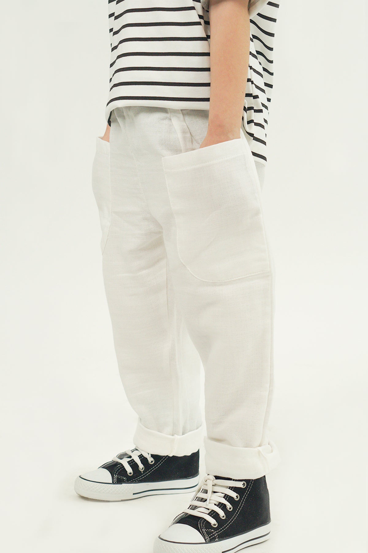 Boyfriend Beyaz (Ekru) Müslin Pantolon