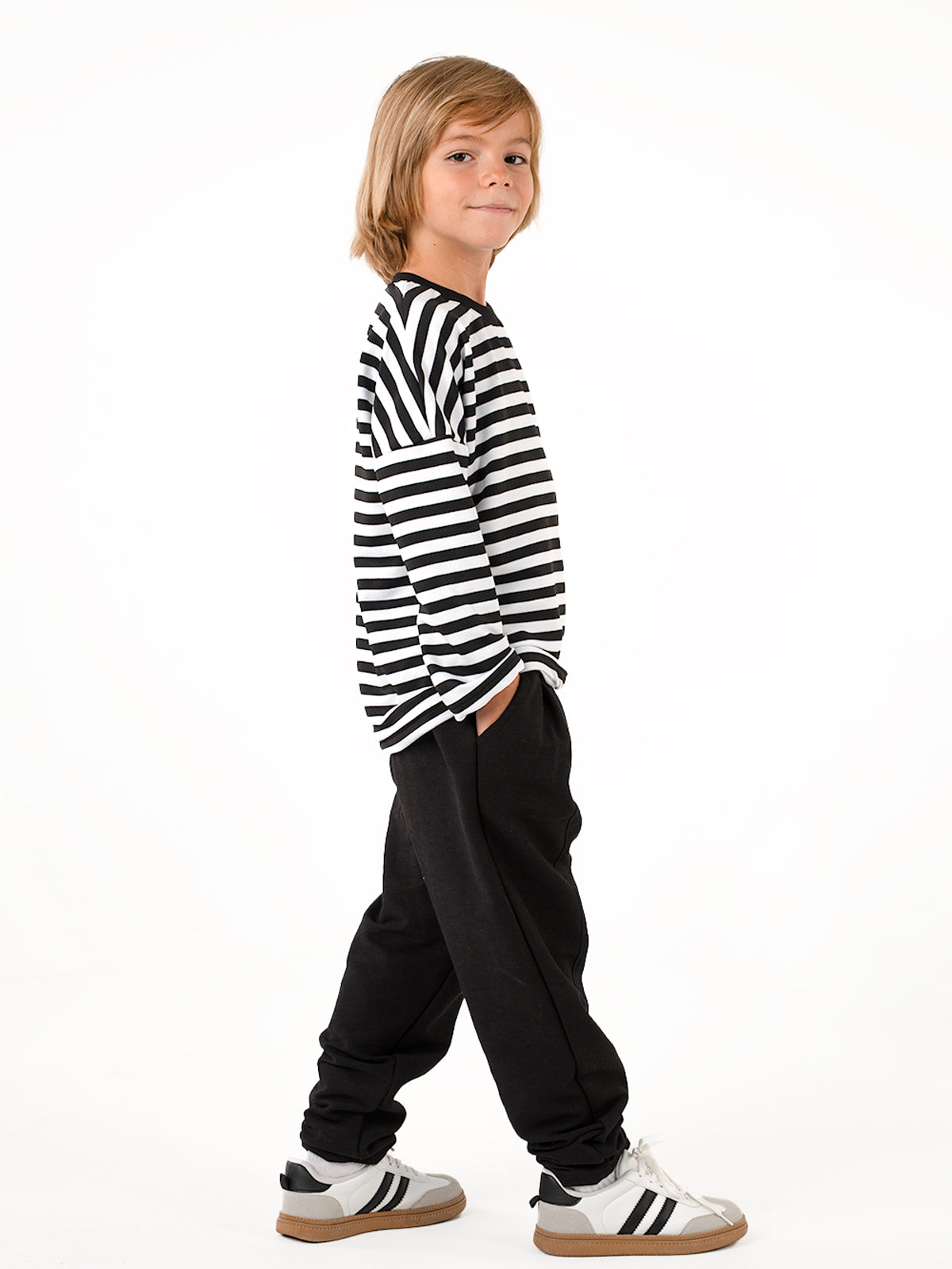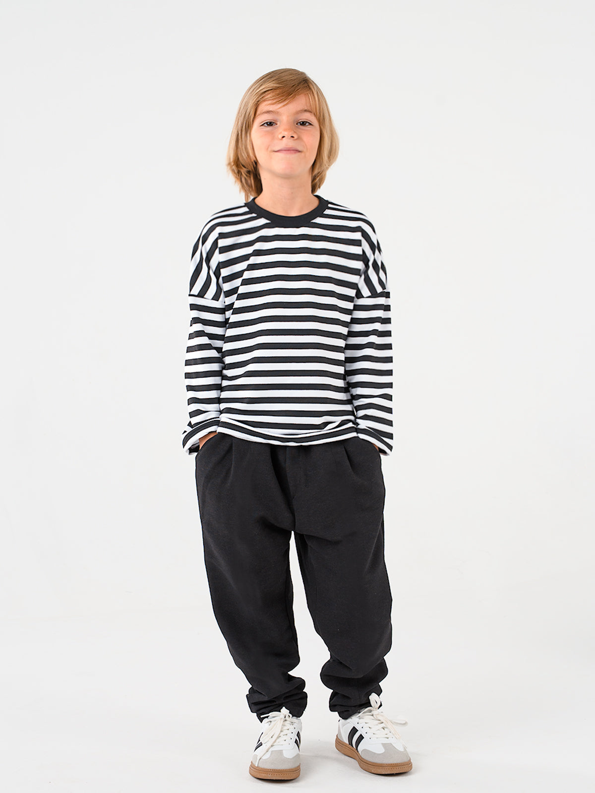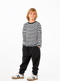 Siyah Beyaz Çizgili 3 İplik Sweat- Siyah İnterlok Carrot Eşofman