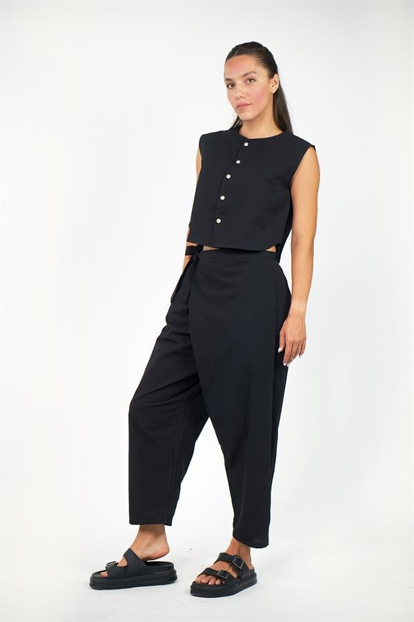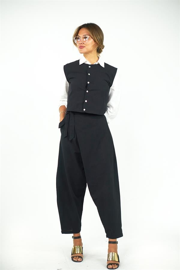 Siyah %100 pamuklu kumaş kullanılmıştır.