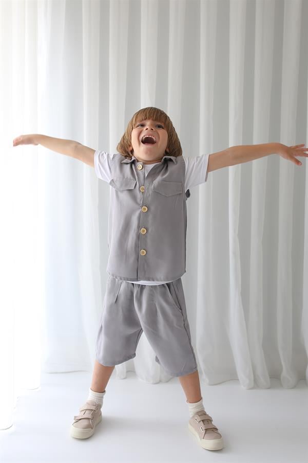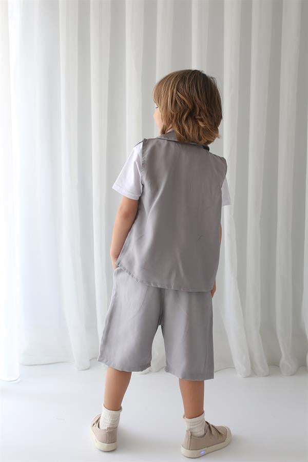 Gri Tensel Spor Yelek + Gri Tensel Soho Şort