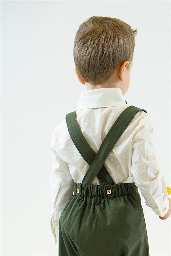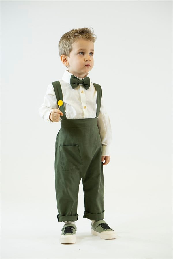 Haki Yeşili Gabardin Harem Salopet + Klasik Uzun Kollu Gömlek + Papyon