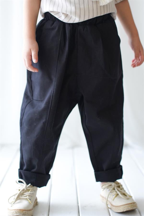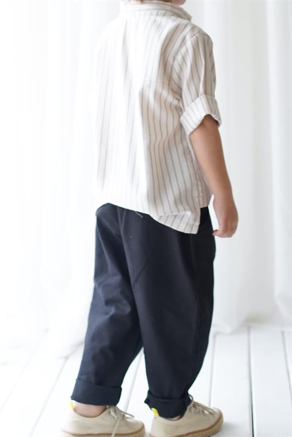 İkili Set Siyah Keten Ve Siyah Beyaz Çizgili Keten Carrot Pantolon