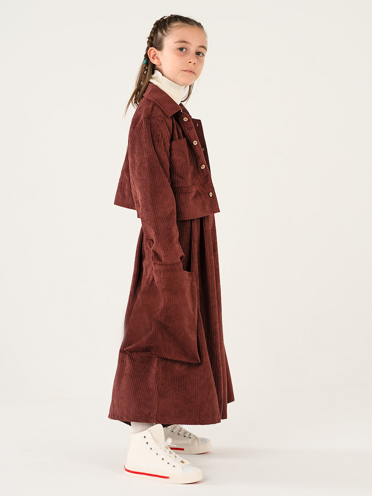 Kadife Kali Pantolon Etek + Crop Ceket Takım - BORDO