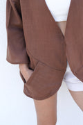 Kadın Ceket + Kahve Vera Keten Short Kimono