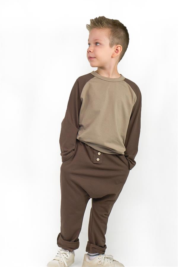 Rahat kesimi ile günlük kullanım için ideal olan haki krem reglan kol eşofman takımı, hareket özgürlüğünüzü kısıtlamaz.; - Normal bel tasarımı sayesinde konforlu bir oturuş sunar ve gün boyu rahat etmenizi sağlar.; - Dar paça kesimi ile modern ve şık bir görünüm kazandırırken, bisiklet yaka detayı sade ve spor bir stil oluşturur.; - İki parçadan oluşan set içeriği, hem üst hem de alt parça olarak tam bir kombin imkanı sunar.; - Çift cepli tasarım eşyalarınız için pratik saklama alanları sağlar ve fonksiyonellik katar.; - Design koleksiyonuna ait bu ürün, trendleri takip eden genç ve dinamik tarzınıza uyum sağlar.; - Havuç/şalvar siluetiyle modern ve trend bir görünüm elde edersiniz; geometrik deseniyle de stilinizi tamamlar.; - Baskısız tasarım sayesinde sade ve şık duruşunu korurken, 2 iplik dokuma tipi dayanıklılık vaat eder.; - Sürdürülebilirlik detaylarına sahip olması çevre dostu bir tercih yapmanız anlamına gelir.; - %95 pamuk içeriği cildinizle dost dokunuşlar sunarken %5 elastan esneklik kazandırır.; - 30 derecede makinede yıkama talimatına uyarak ürününüzün uzun ömürlü olmasını sağlayabilirsiniz.; - Örme kumaş tipi yumuşak dokusuyla teninizde rahatlık hissi verirken, casual ortamlarda rahatlıkla tercih edilebilir.; - Çocuk yaş grubuna hitap eden bu eşofman takımı hem şıklığı hem de rahatlığı beraberinde getirir.; - Erkek cinsiyetine özel tasarlanmıştır; günlük aktivitelerinizde konforlu bir seçenek sunar.; - Uzun kol boyu soğuk havalarda ekstra koruma sağlarken reglan kol tipi modern bir hava katmaktadır.; - Sweatshirt ve eşofman altından oluşan alt-üst takım kombiniyle tam bir gardrop alternatifi oluşturur.;
