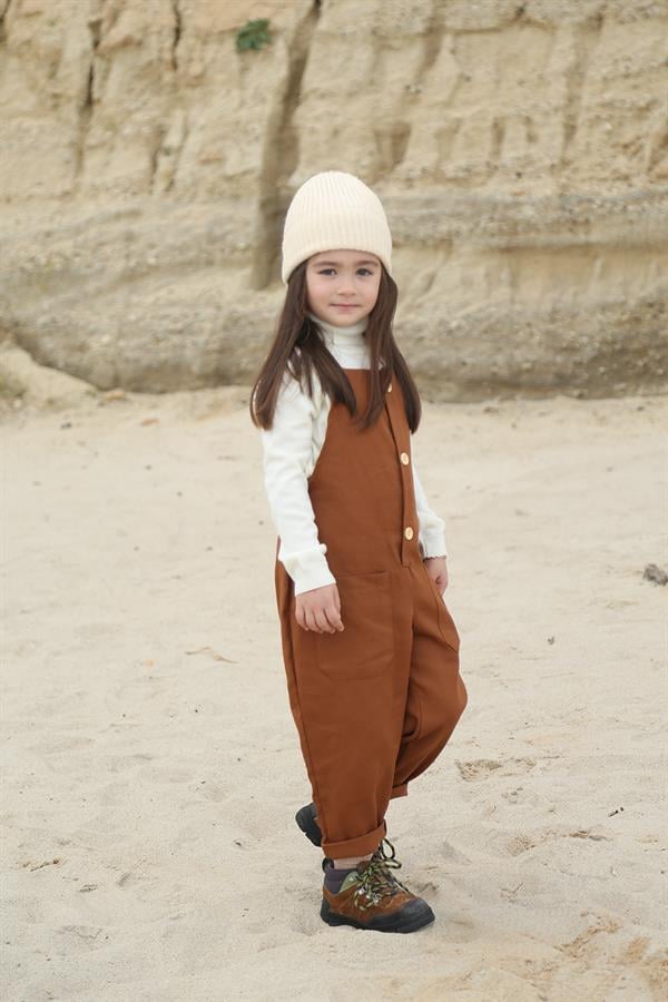 Kahverengi Gabardin Benjamin Askılı Tulum