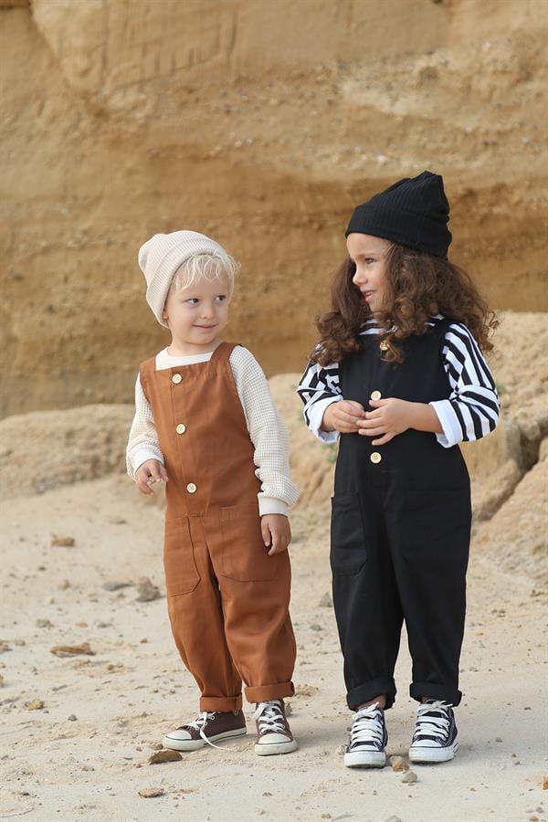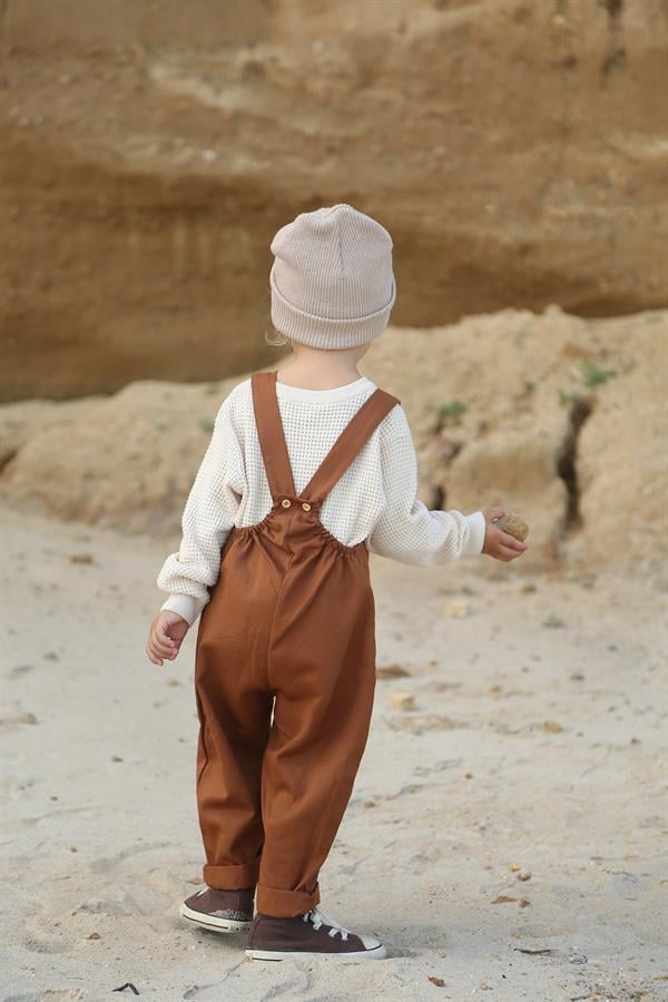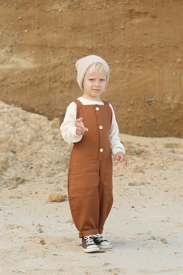 - Kahverengi Gabardin Benjamin Askılı Tulum - T-SHIRT DAHİL DEĞİLDİR.