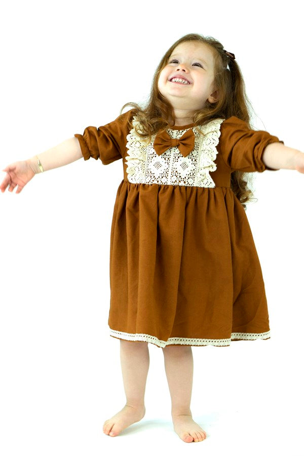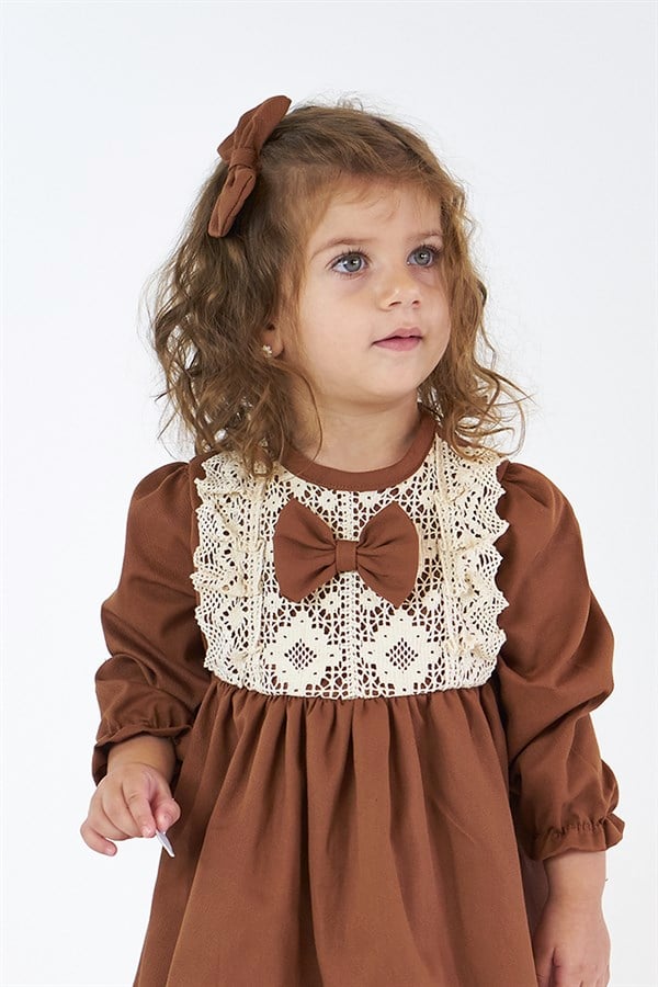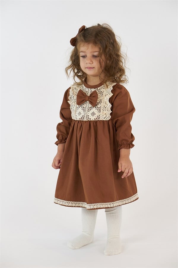 Kahverengi Güpürlü Elbise