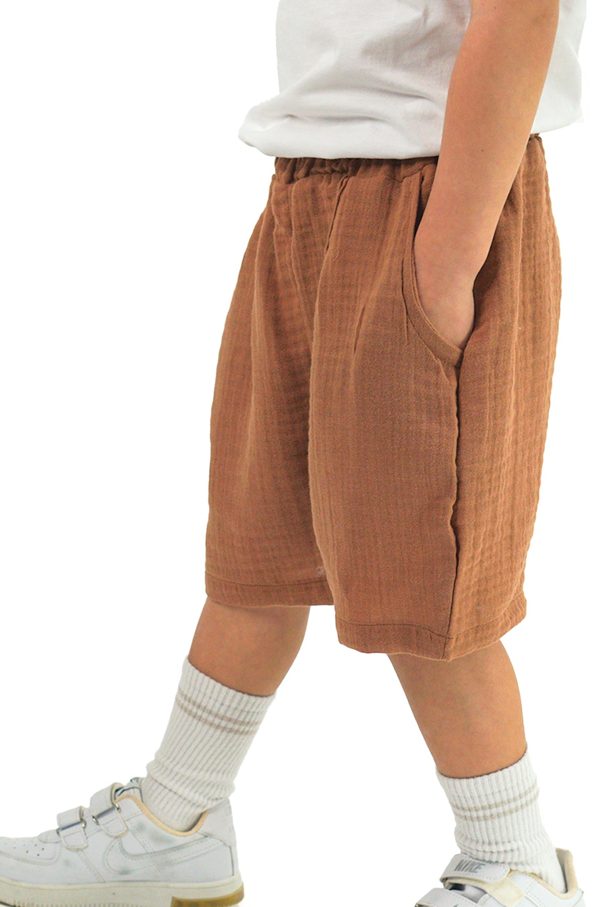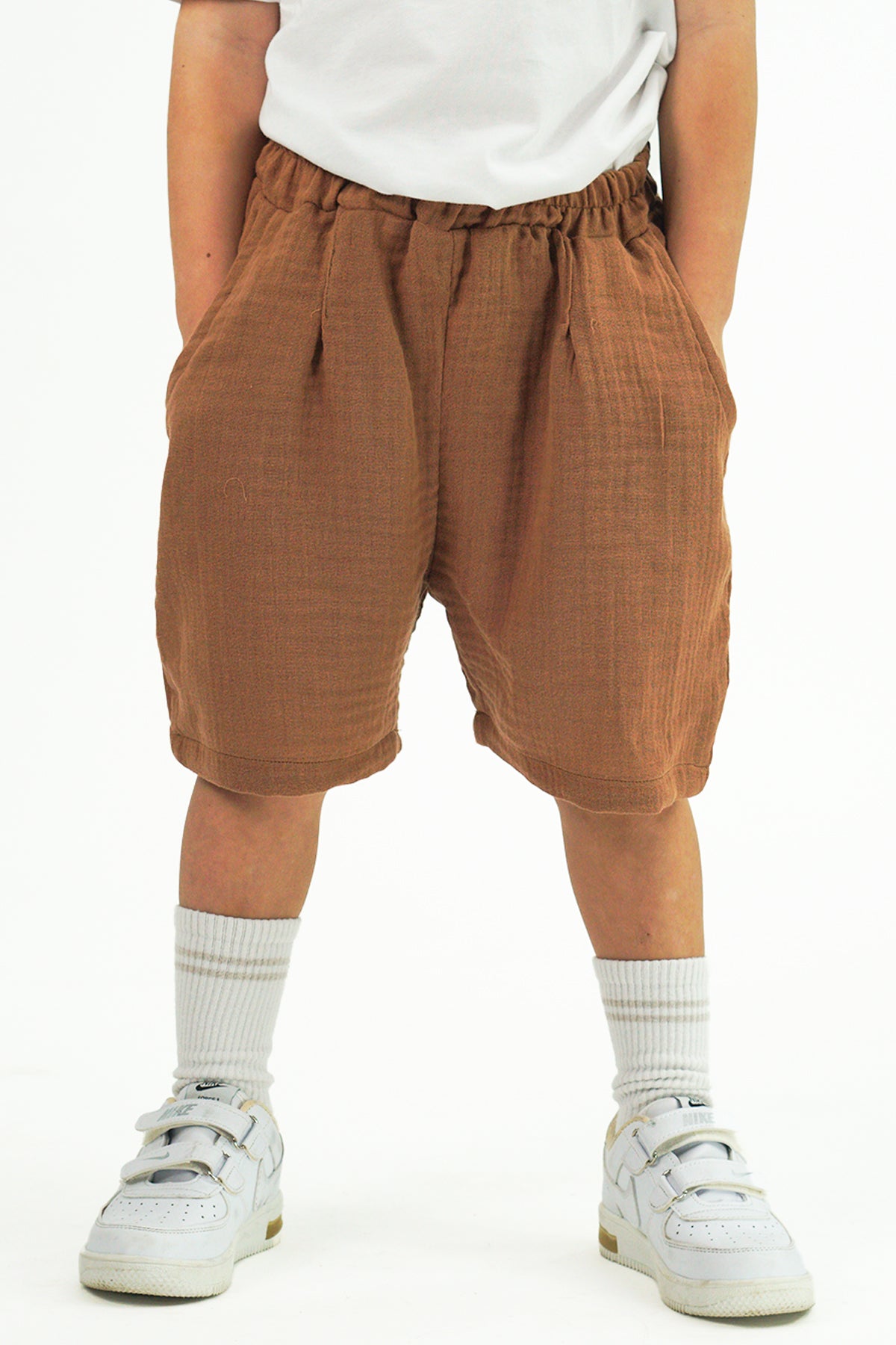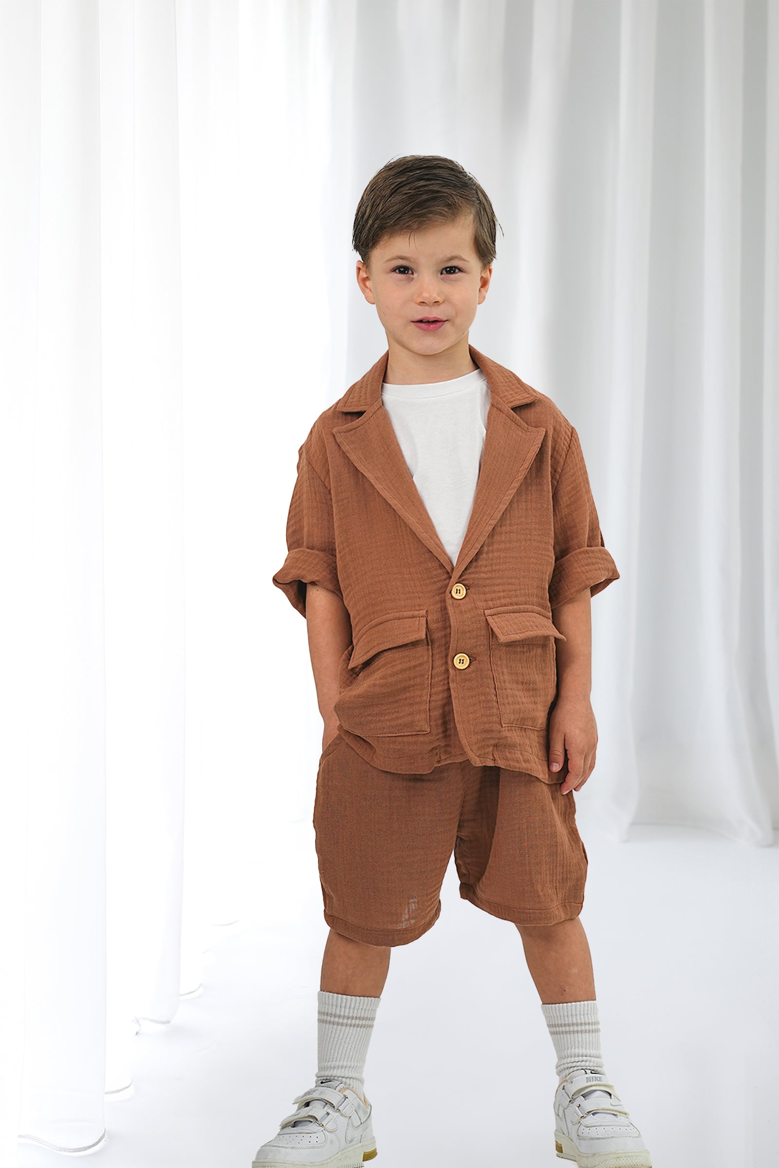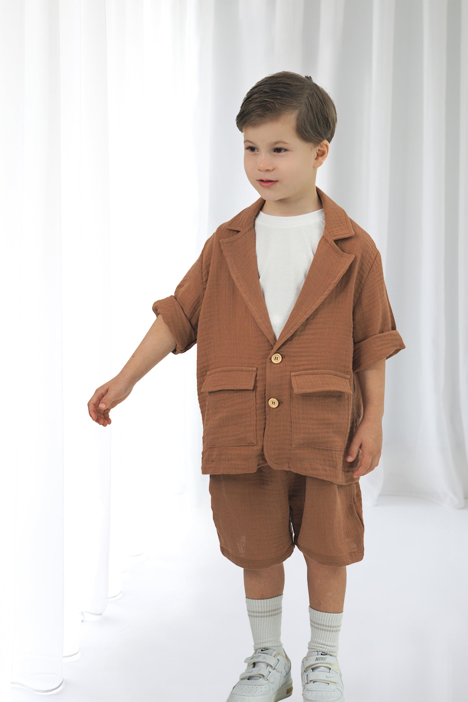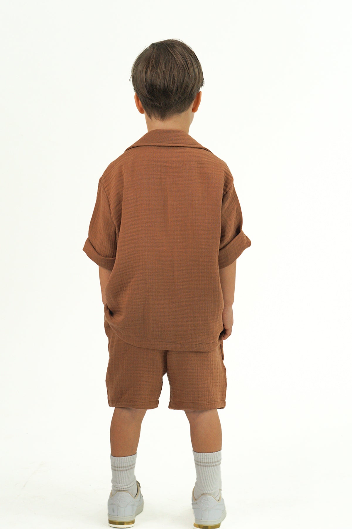 Kahverengi Müslin Rahat Ceket ve Şort Takım