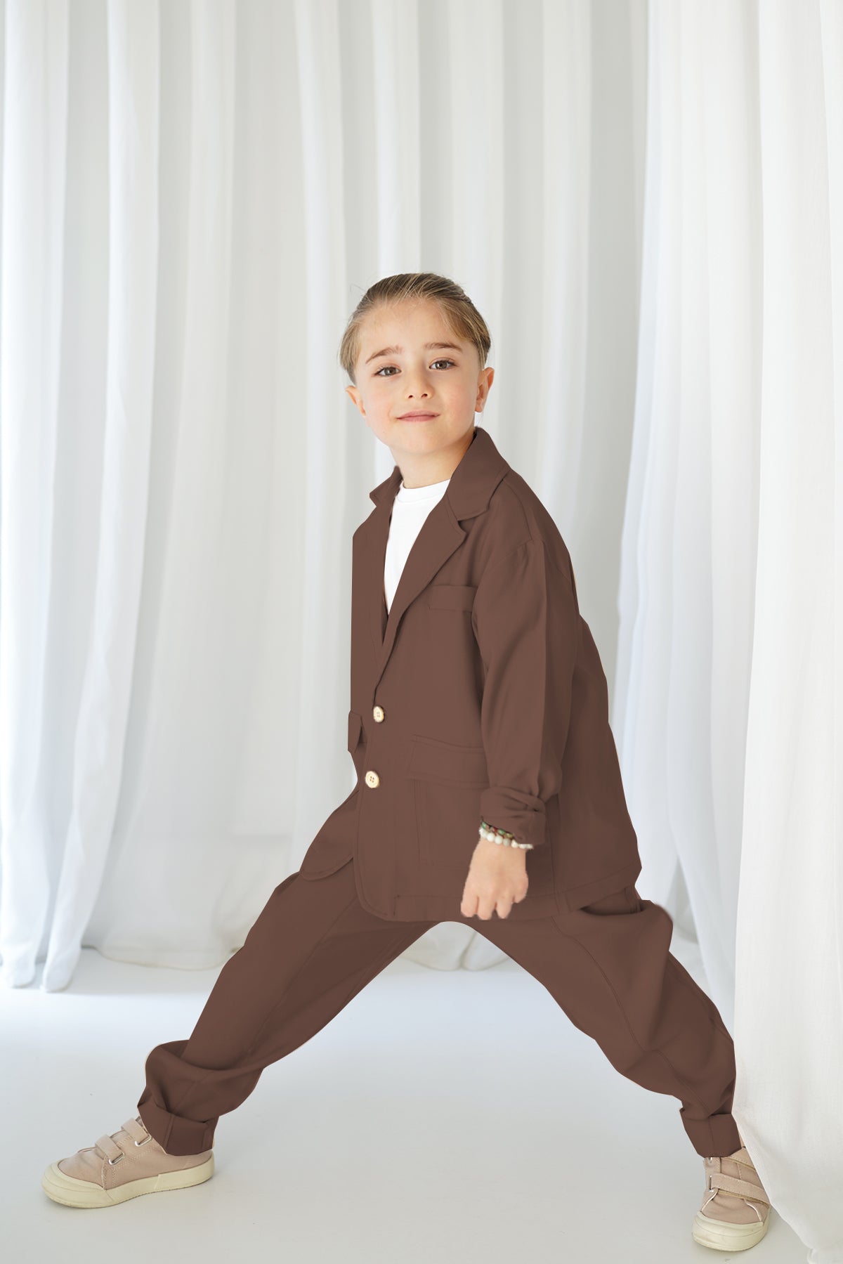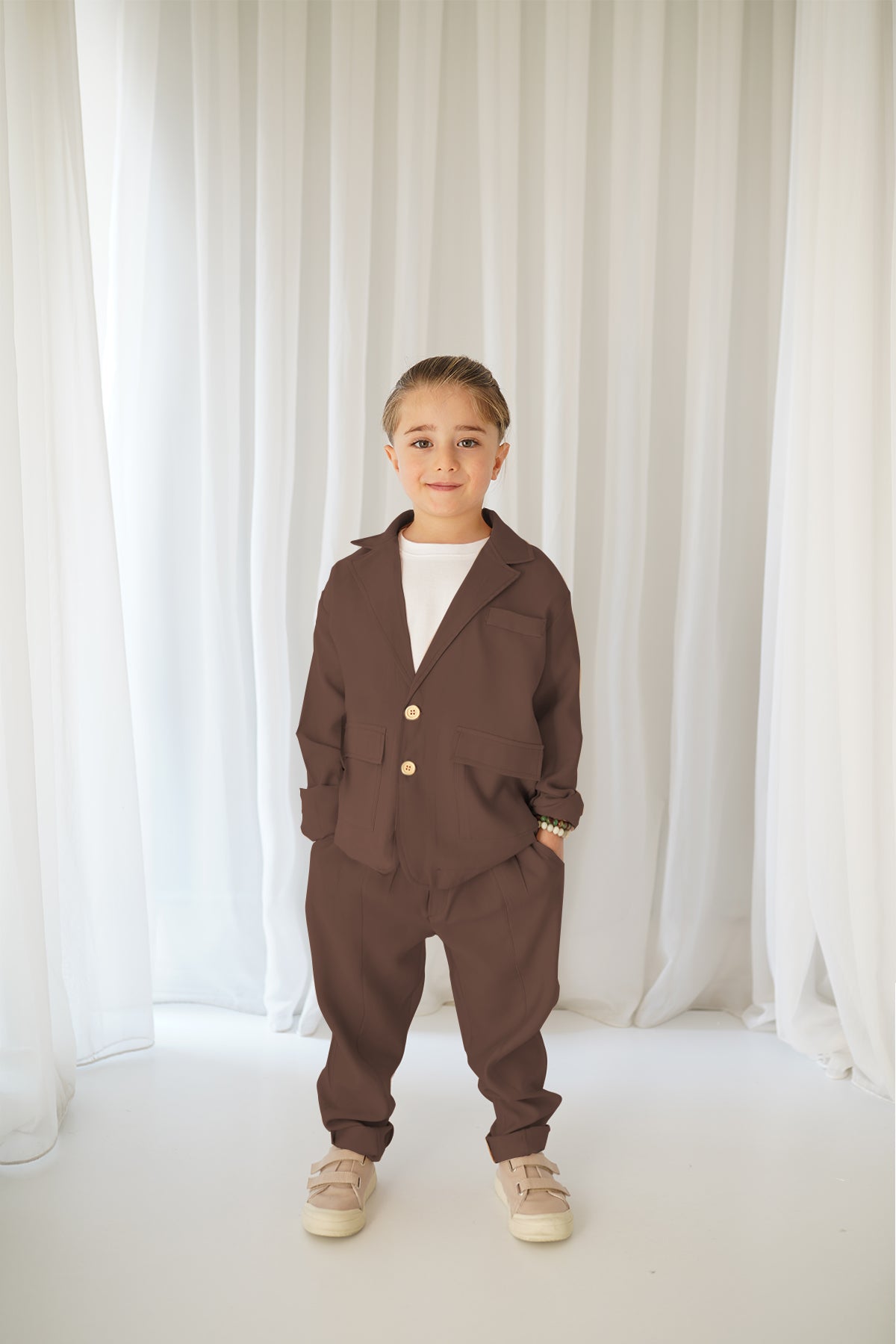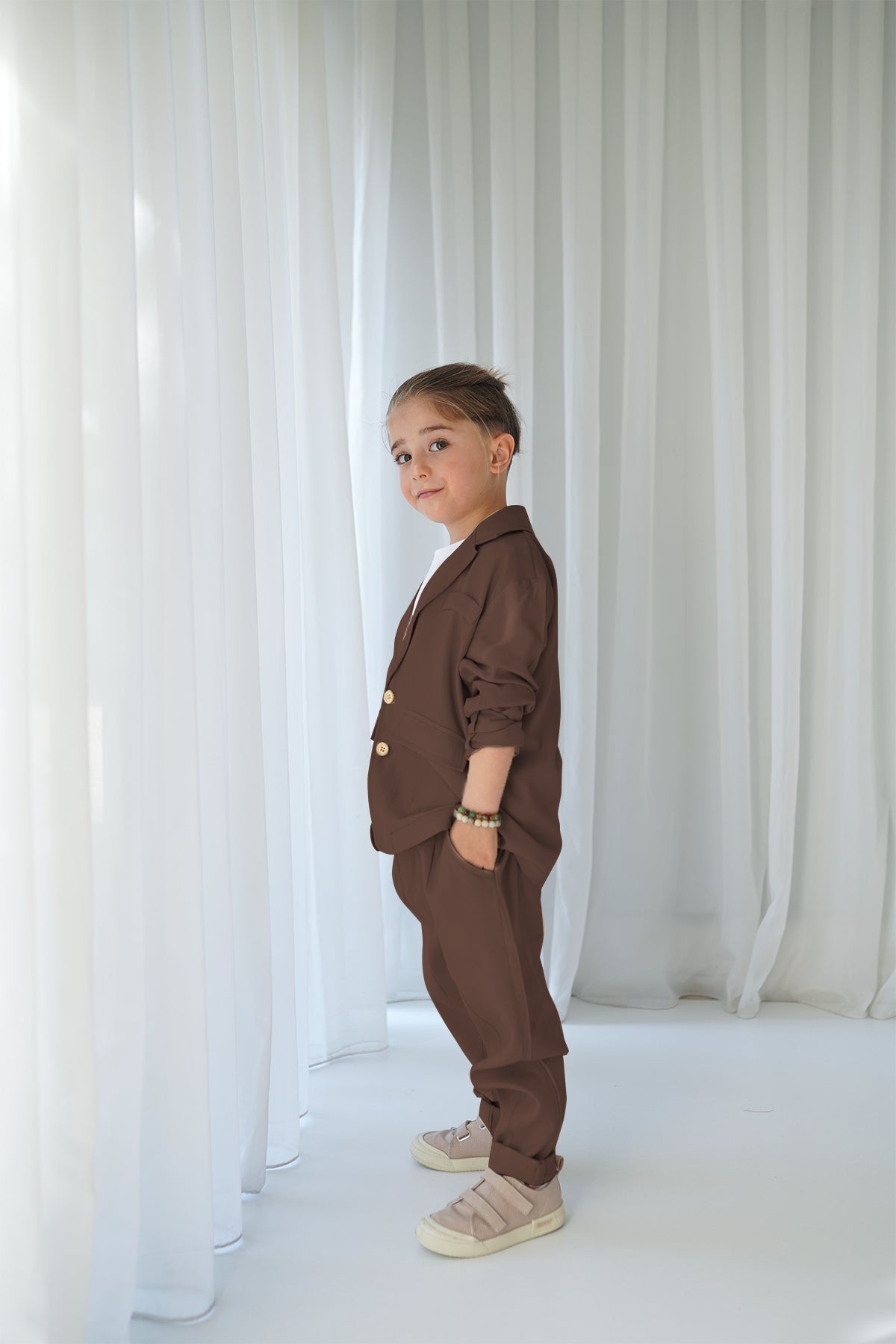 Kahverengi Tensel Ceket ve Pantolon Takım