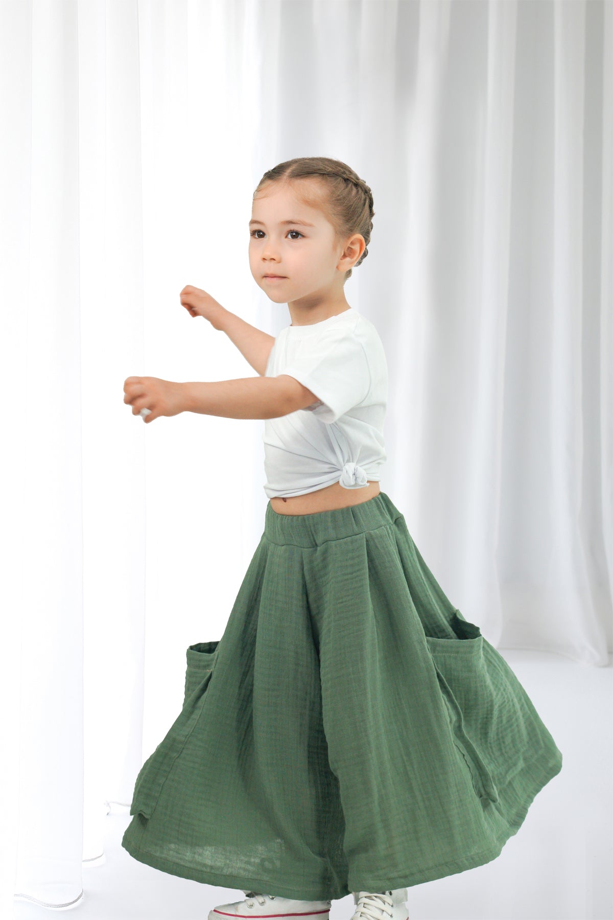 • Detay: Geniş paçalı tasarımı ile etek şıklığında pantolon rahatlığı sunar