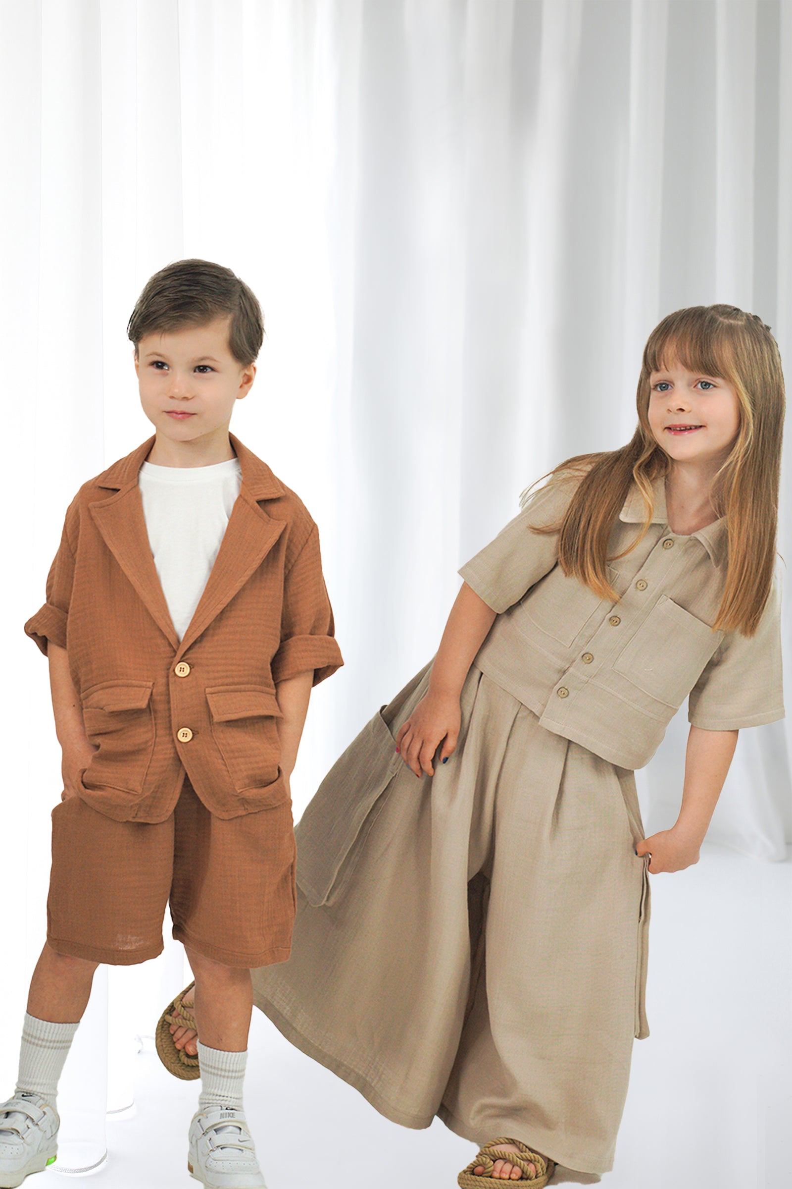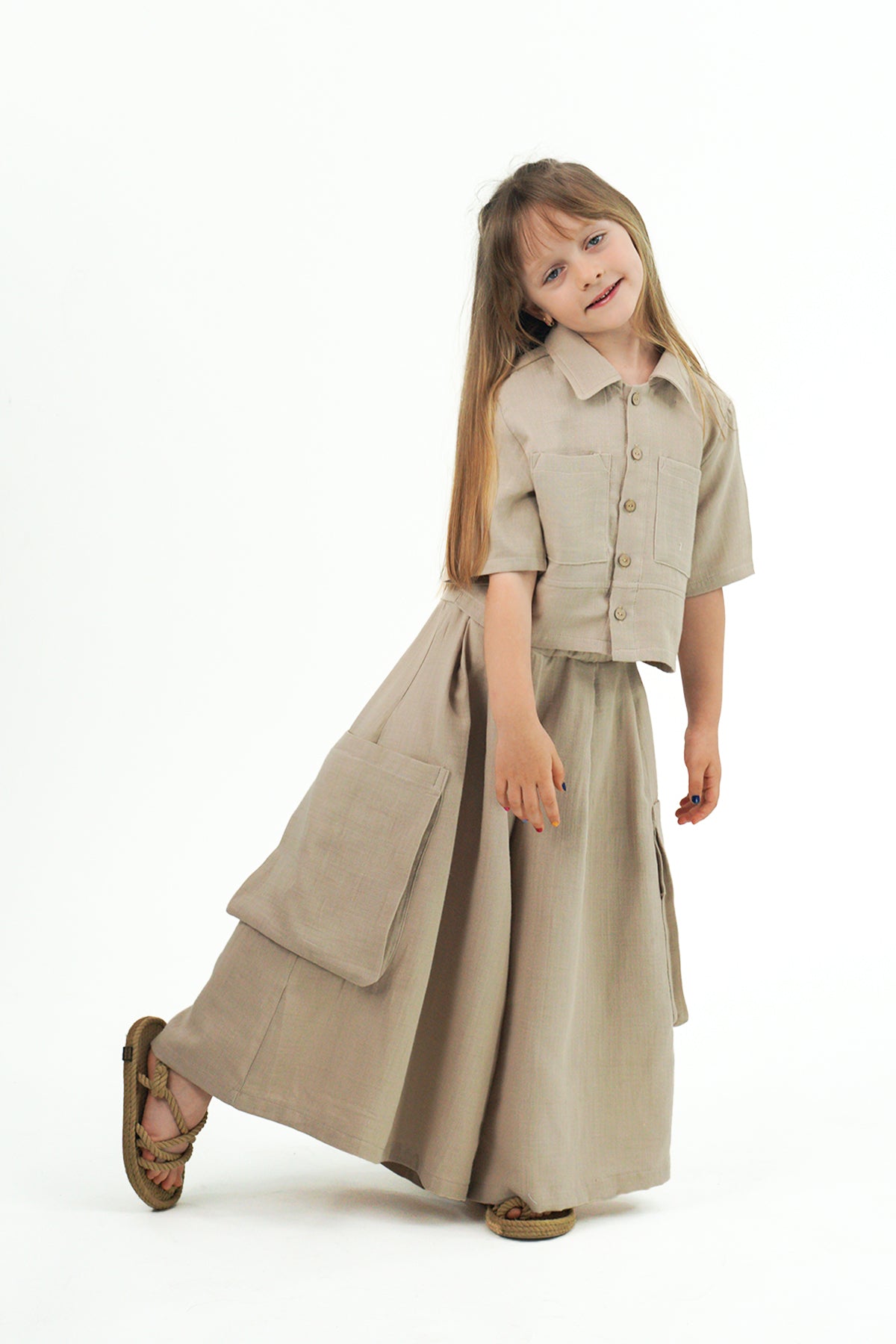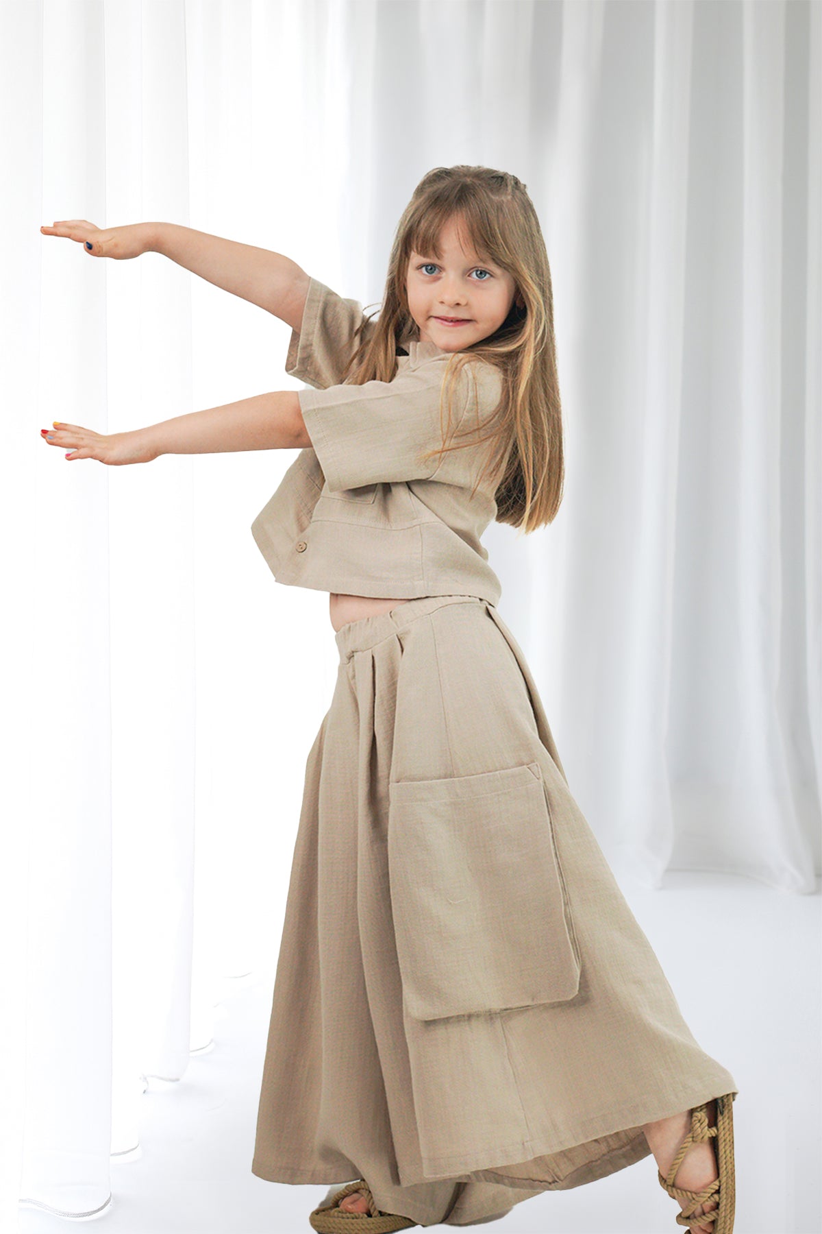 Kali Pantolon Etek ve Müslin Gömlek Takım - Vizon