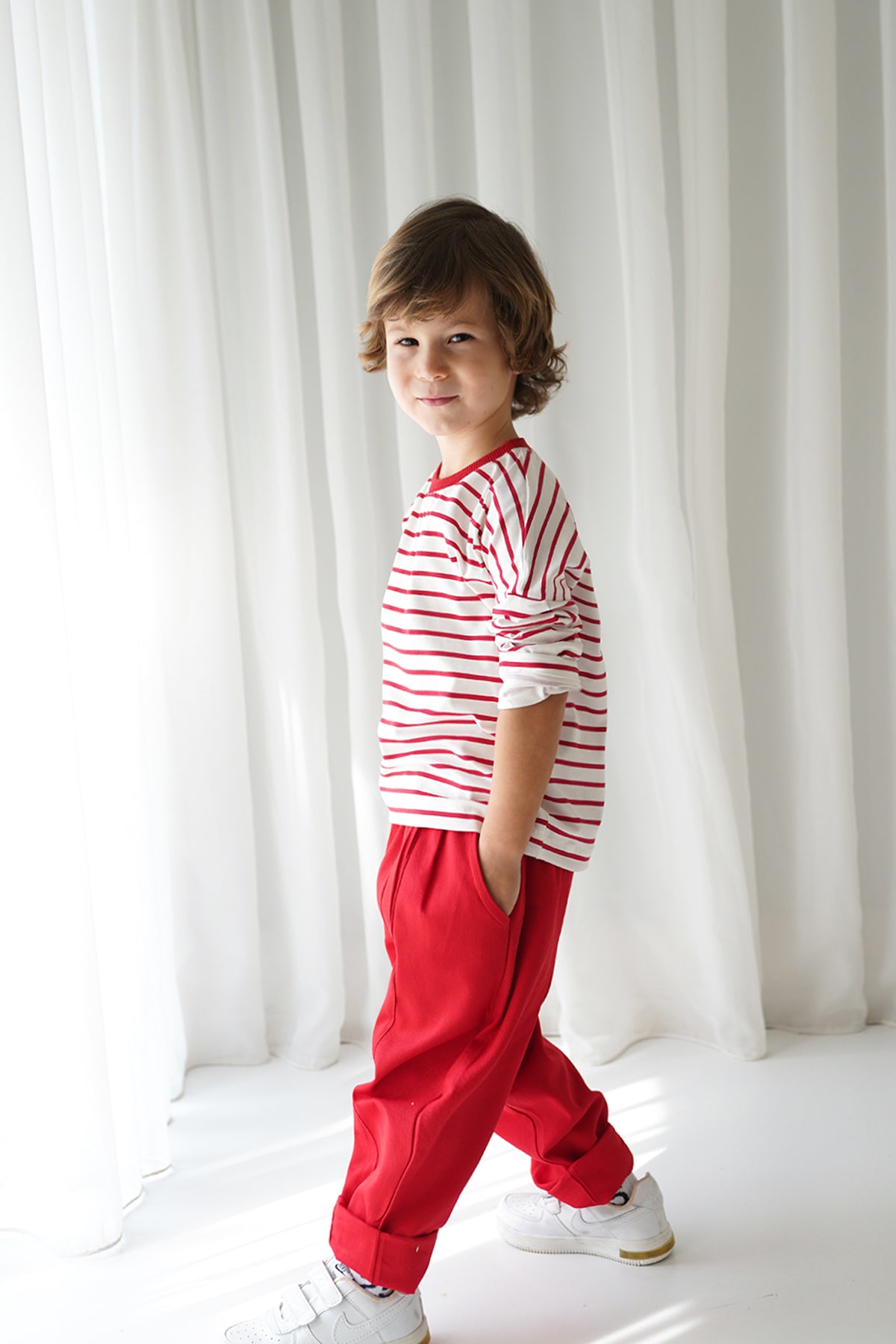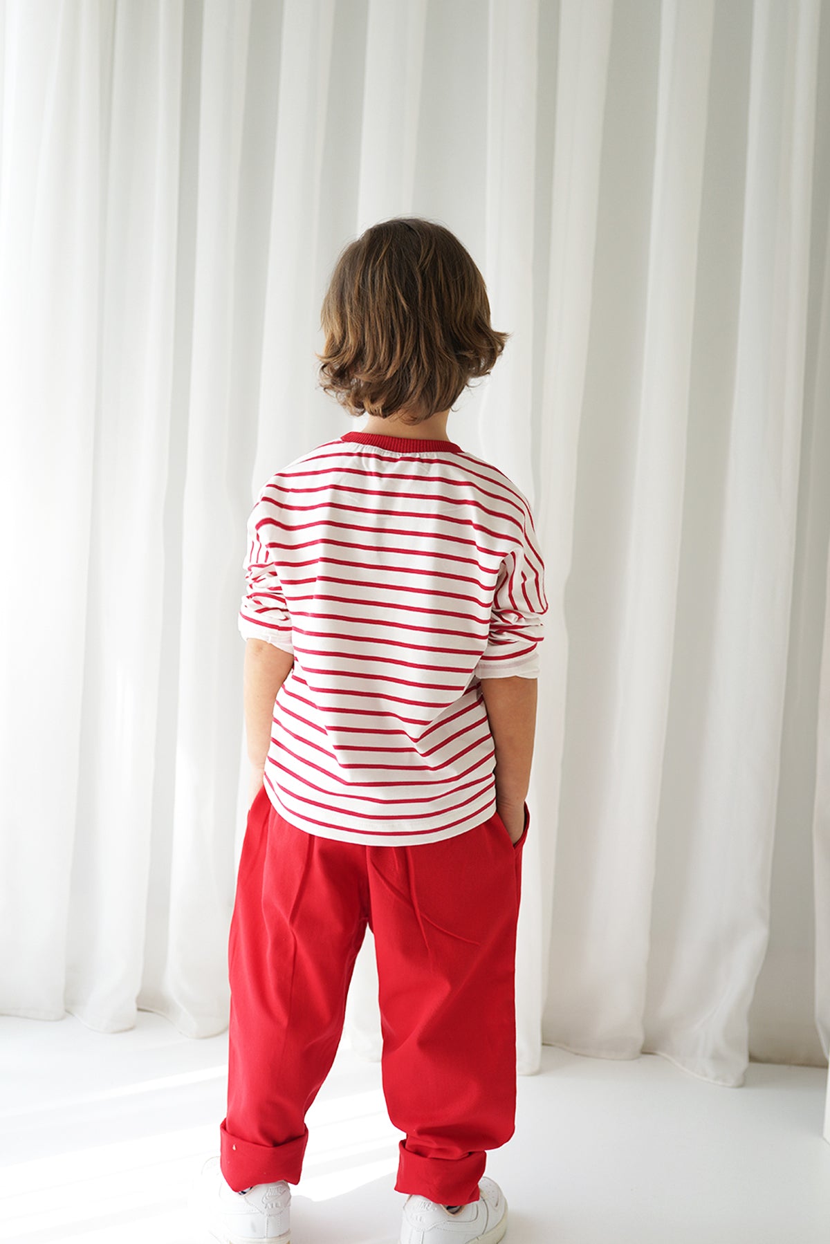 Kırmızı Gabardin Carrot + Kırmızı Beyaz Çizgili Sweat