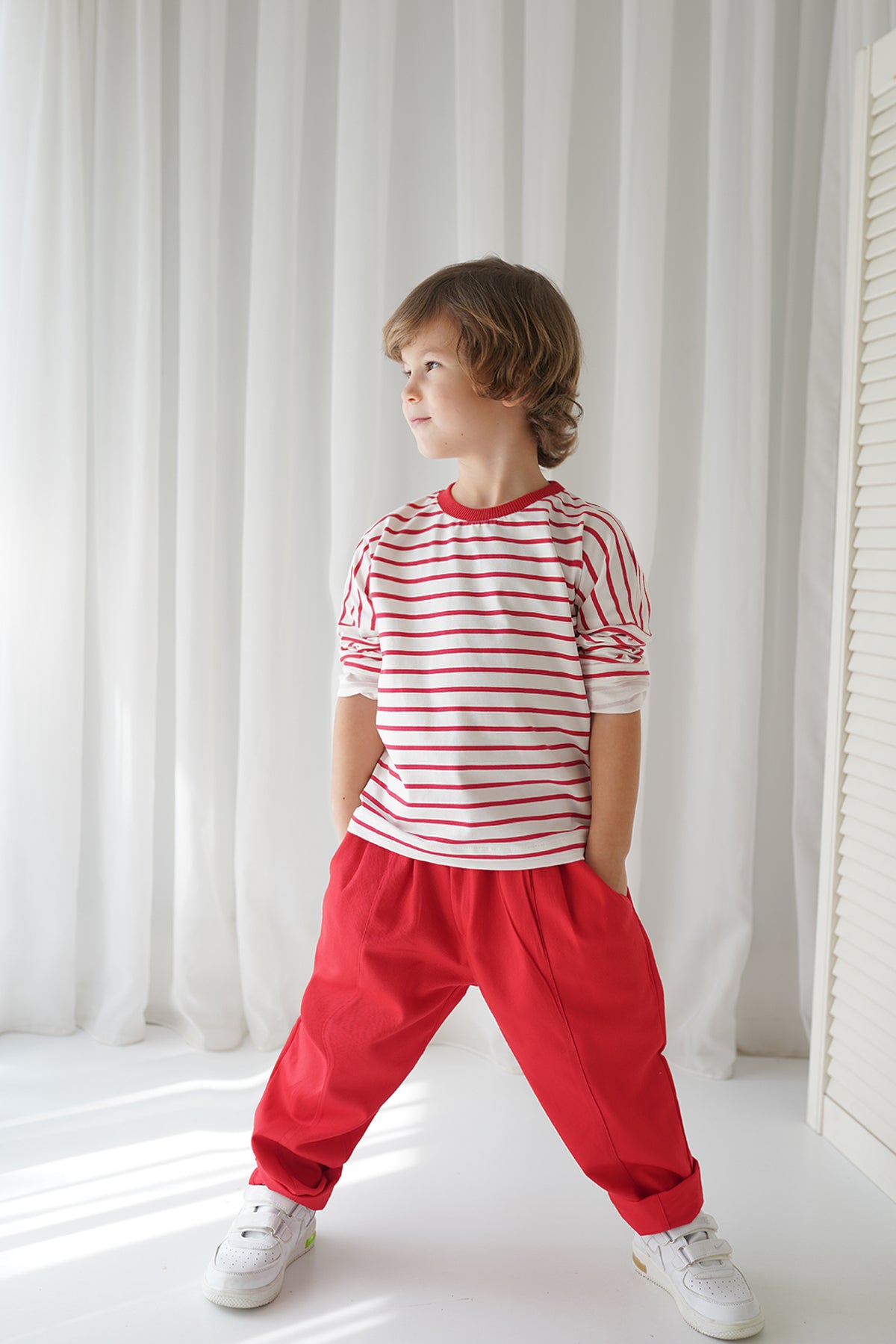 Hafif ve nefes alabilir kumaştan üretilen bu pantolon, çocuklarınız için hem şık hem de konforlu bir seçenektir.Rahat kalıbı sayesinde gün boyu özgürce hareket etmelerine olanak tanır.Elastik beli ve modern tasarımı ile her kombine kolayca uyum sağlar.Tek Pantolondur. -