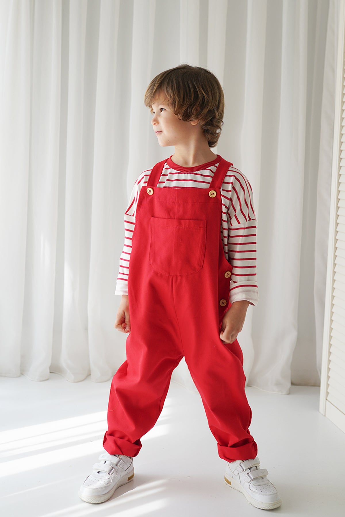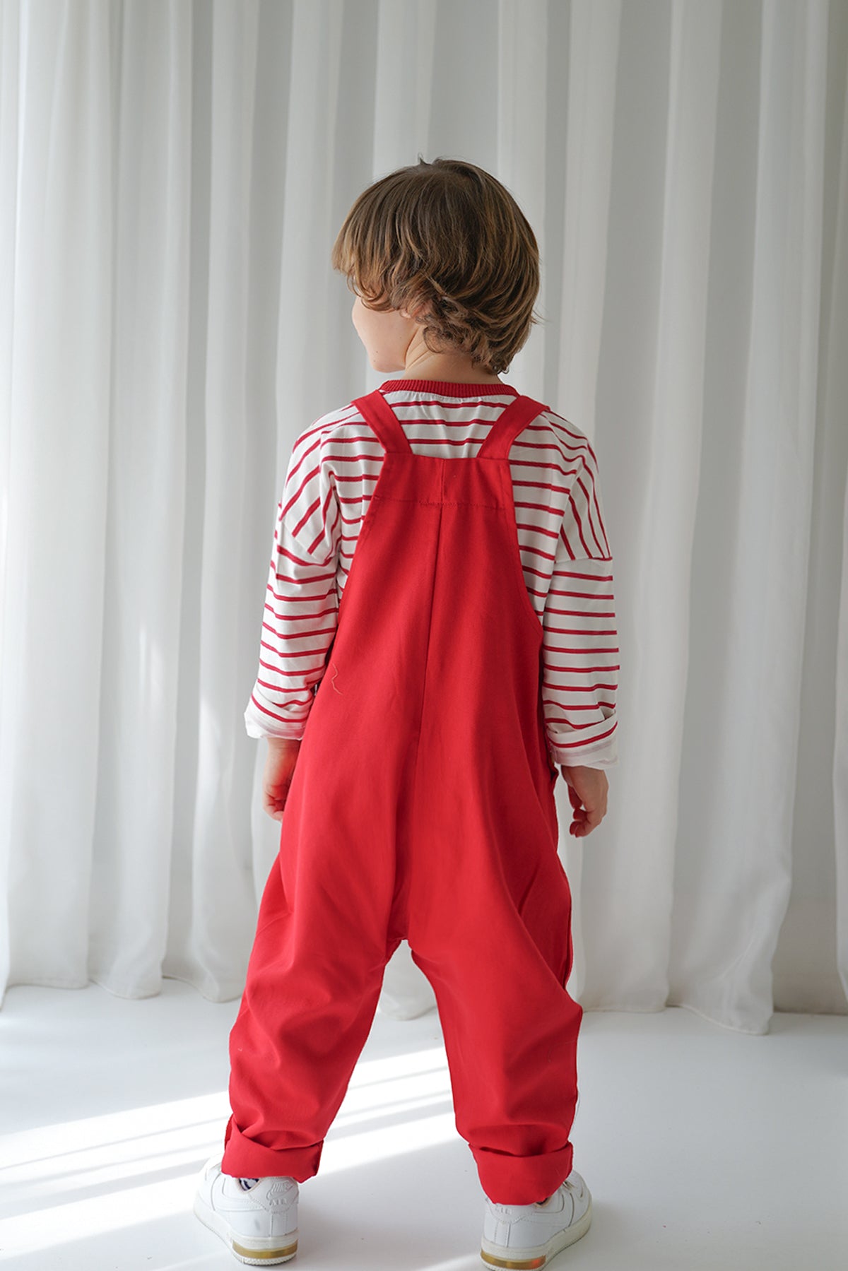 Kırmızı Velvet Tulum + Kırmızı Beyaz Çizgili Sweat