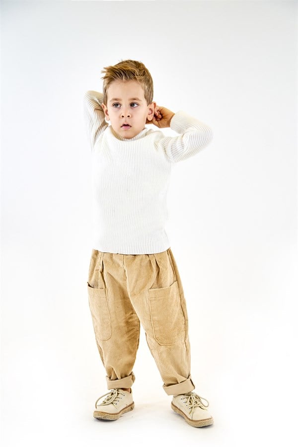 Krem Kadife Boyfriend Pantolon