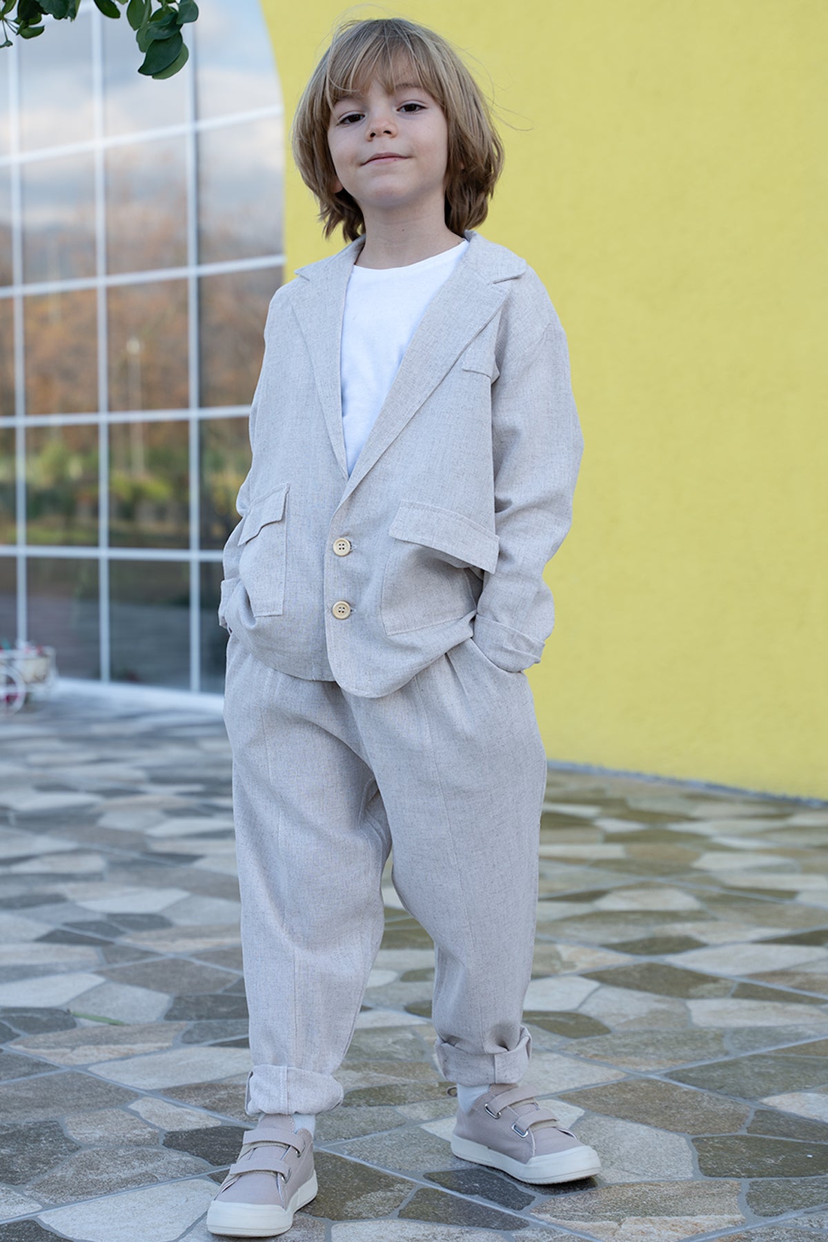 Krem Keten Rahat Ceket + Krem Keten Rahat Pantolon