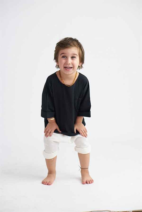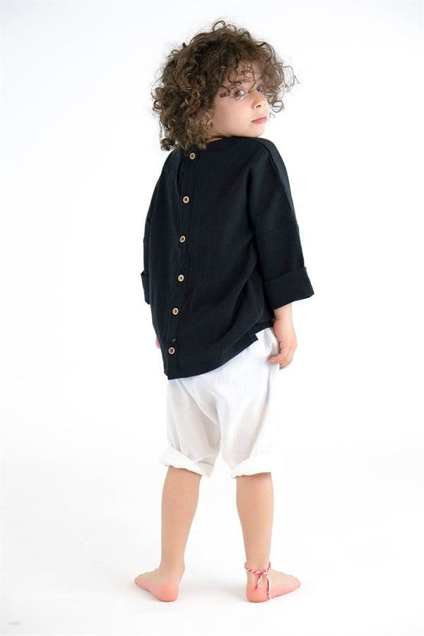 Krem Şile Bezi Şort + Siyah Şile Bezi Gömlek