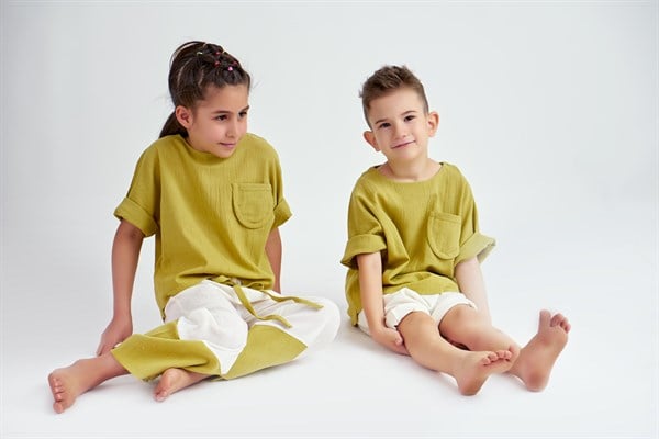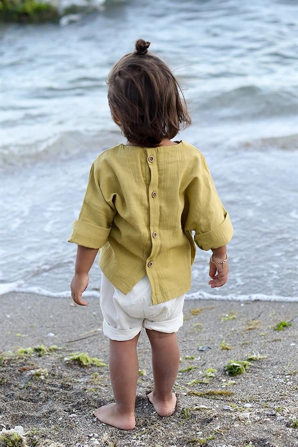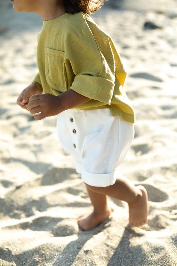 Krem Şile Bezi Şort + Yağ Yeşili Şile Bezi Gömlek