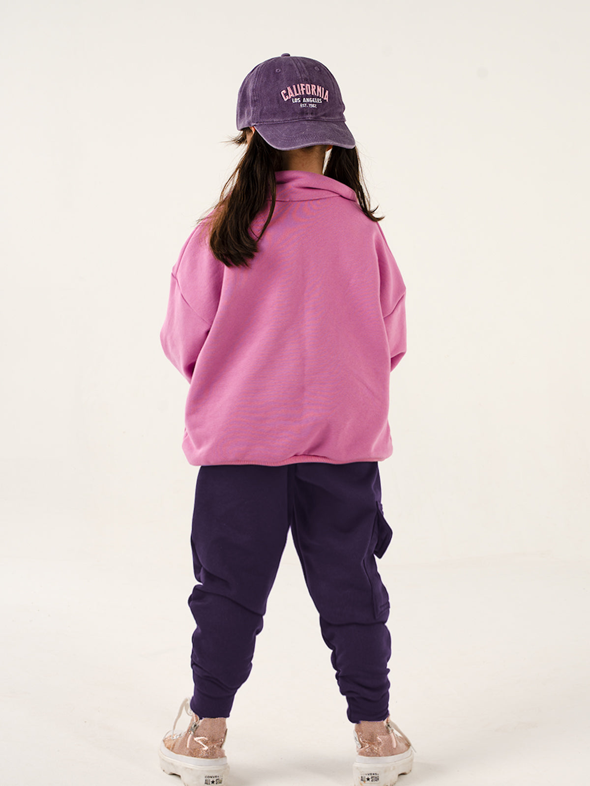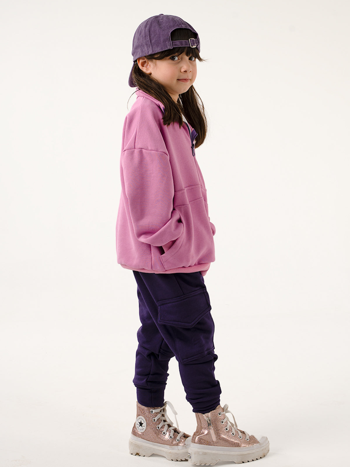 Mor 3 İplik Yandan Cepli Eşofman - Lila Cepli Sweat