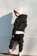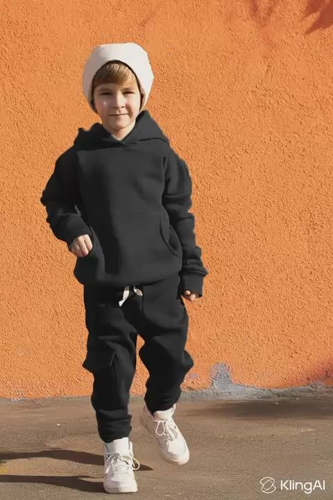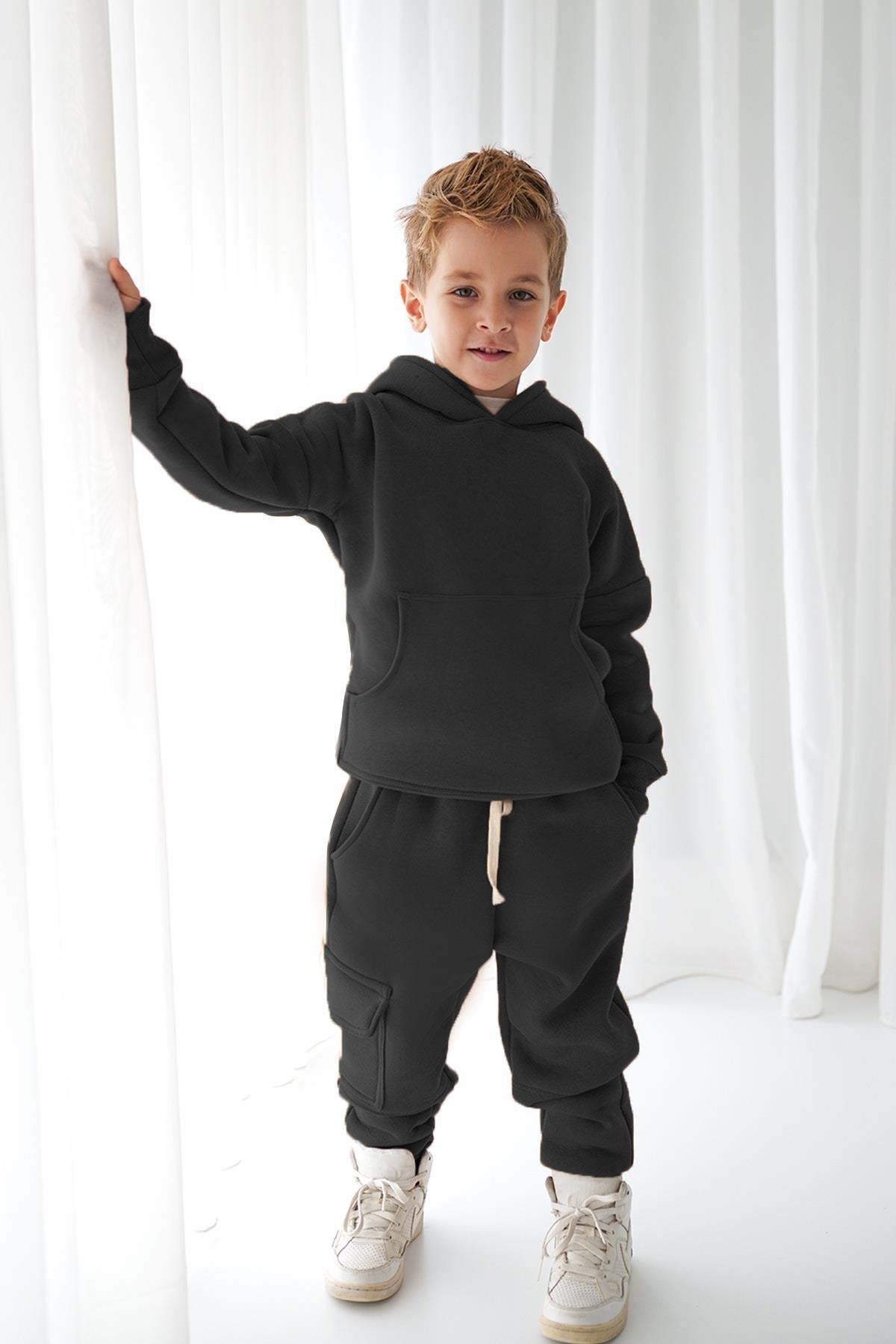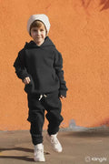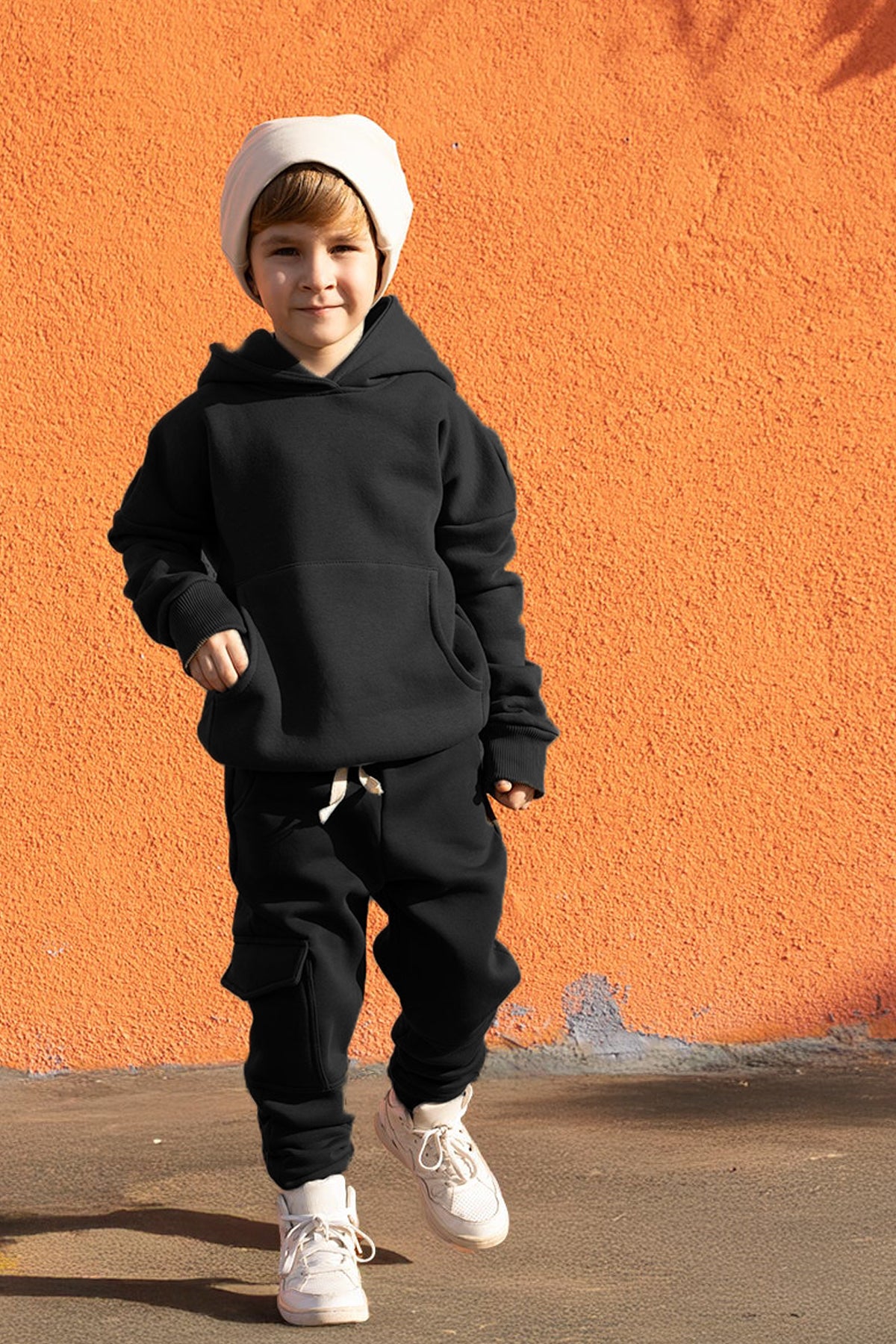 Siyah 3 İplik Şardonlu Kapüşonlu Eşofman Takım