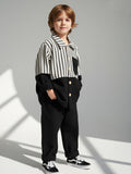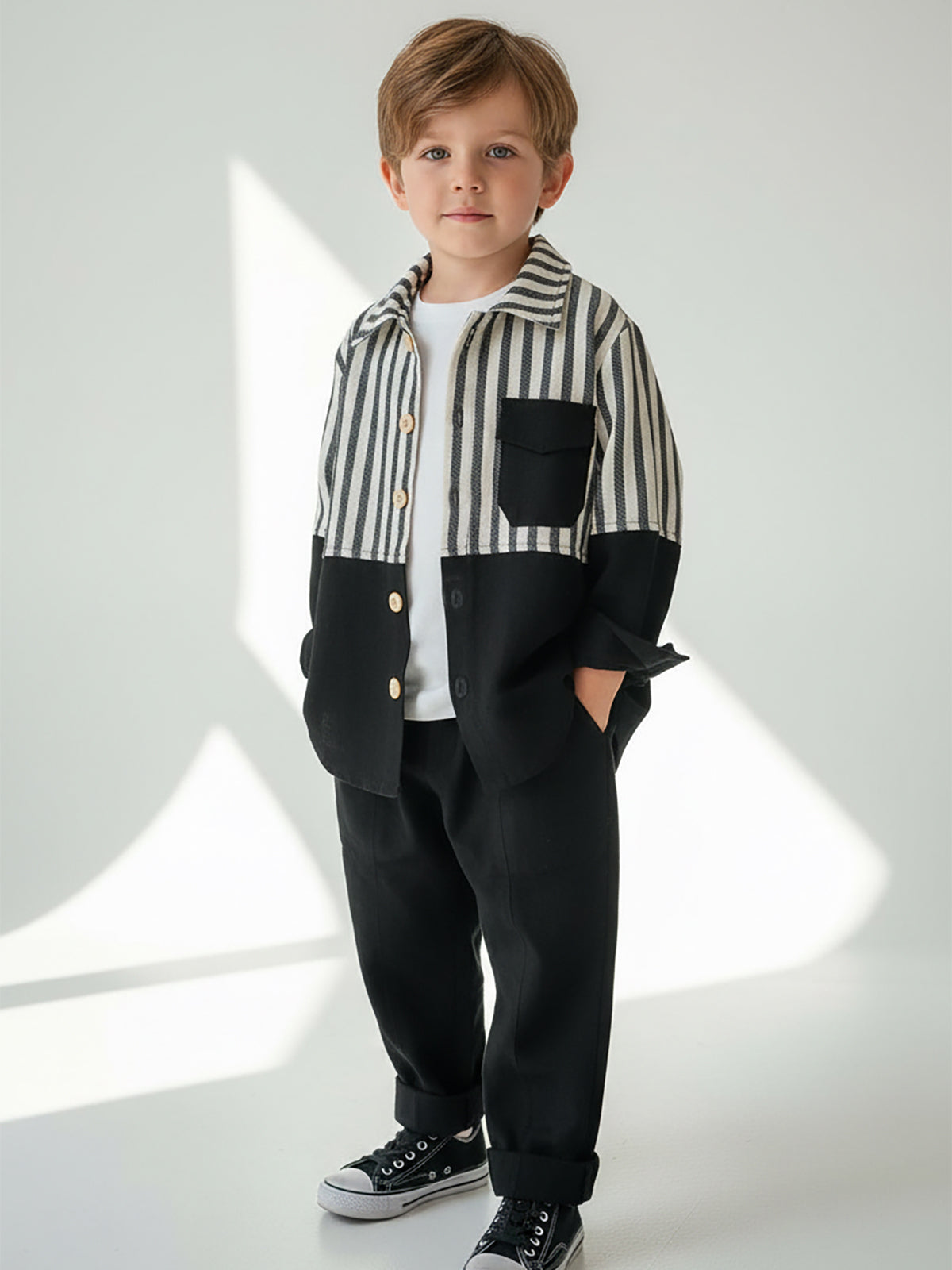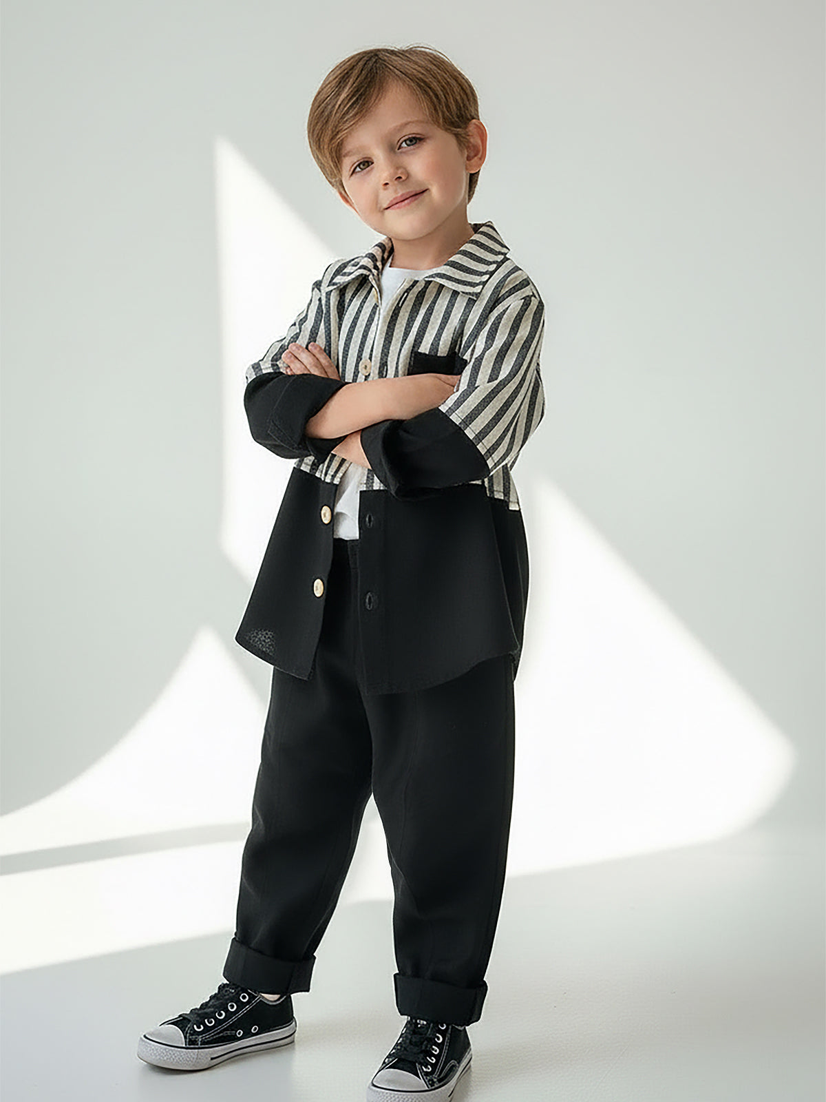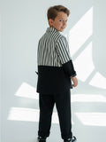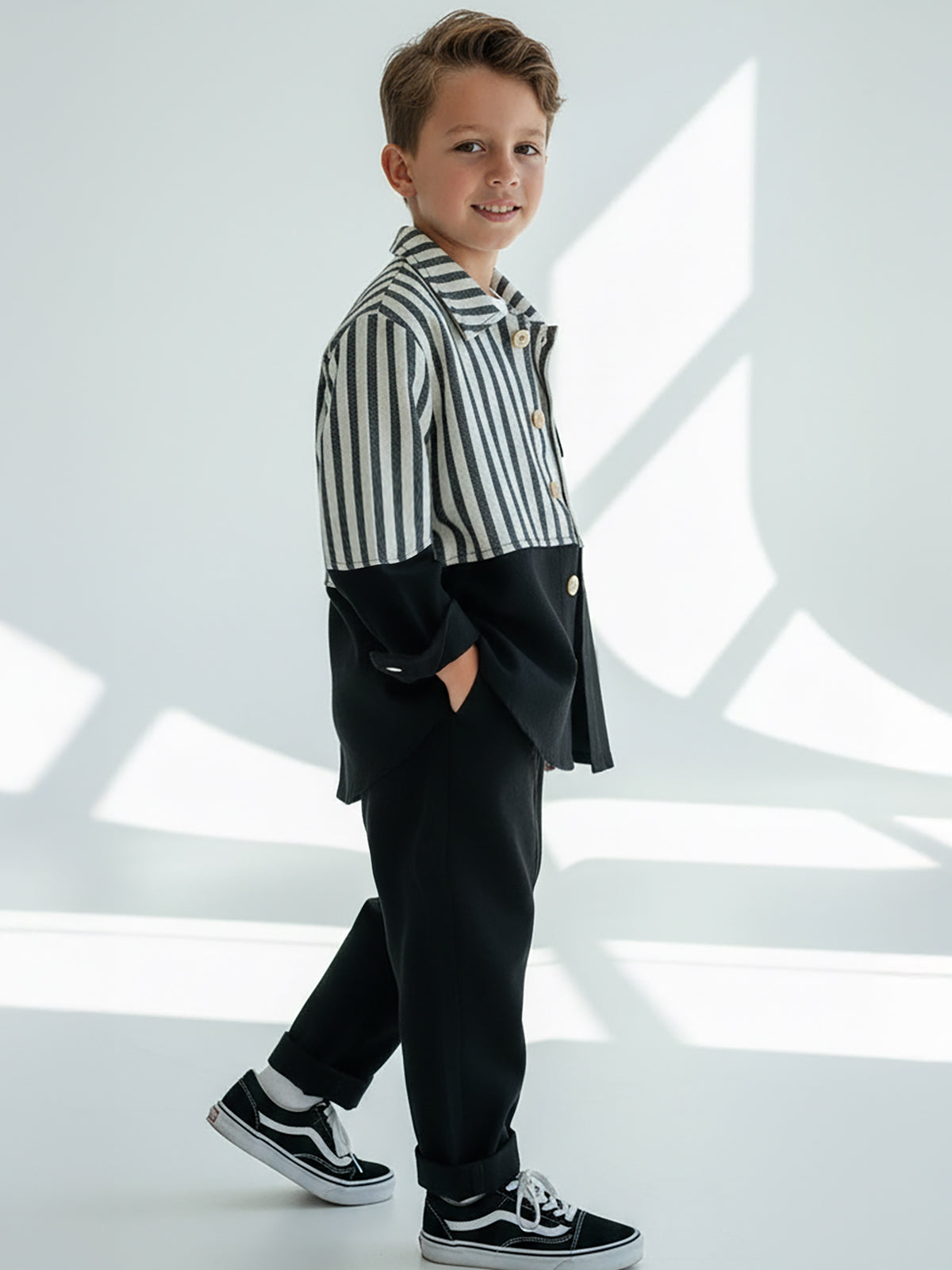 Siyah Beyaz Twix Retro Ceket - Siyah Keten Carrot Pantolon Takım
