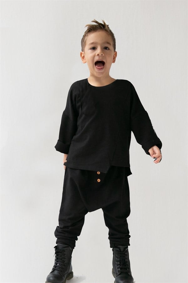 Siyah Harem Pantolon & Siyah Çapraz Sweat