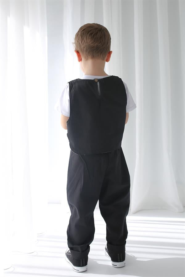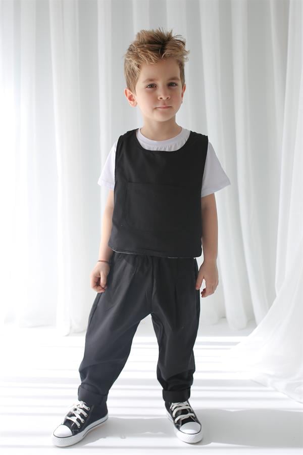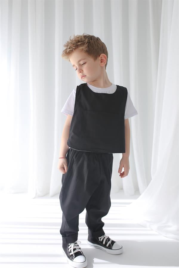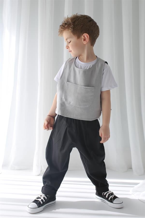 Siyah Keten Carrot Pantolon + Siyah Gri Çift Taraflı Keten Yelek