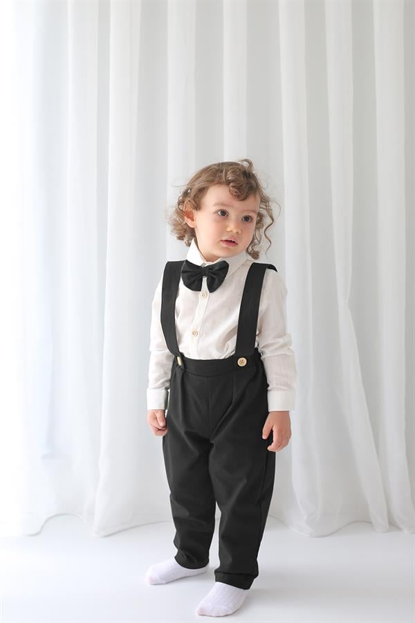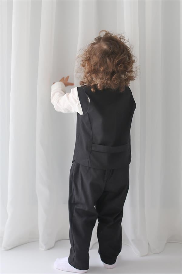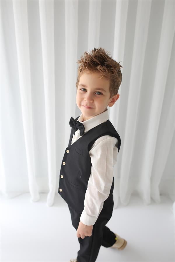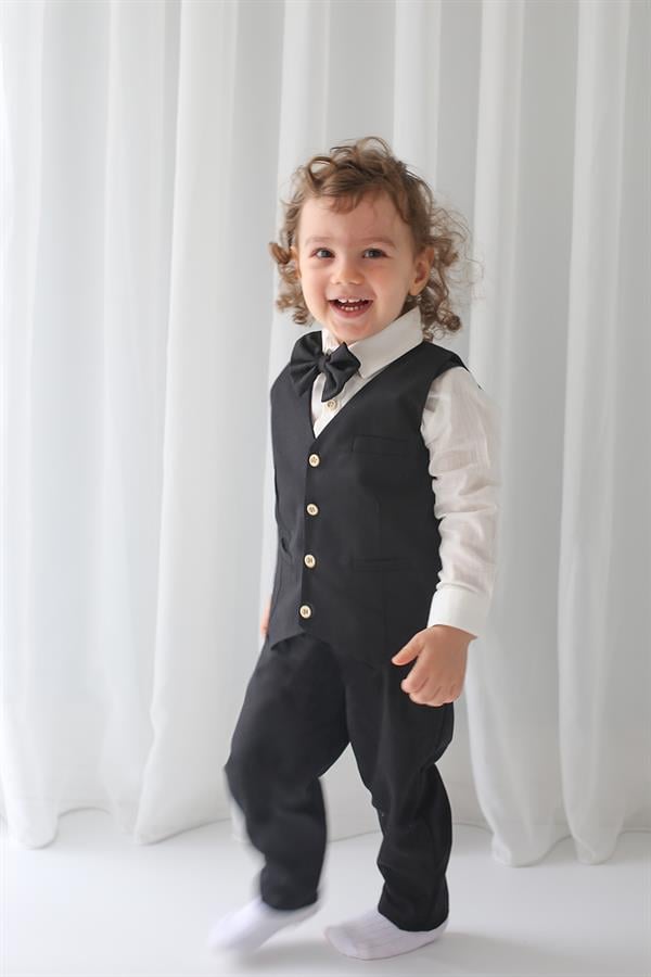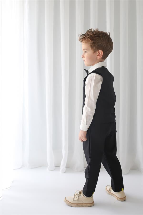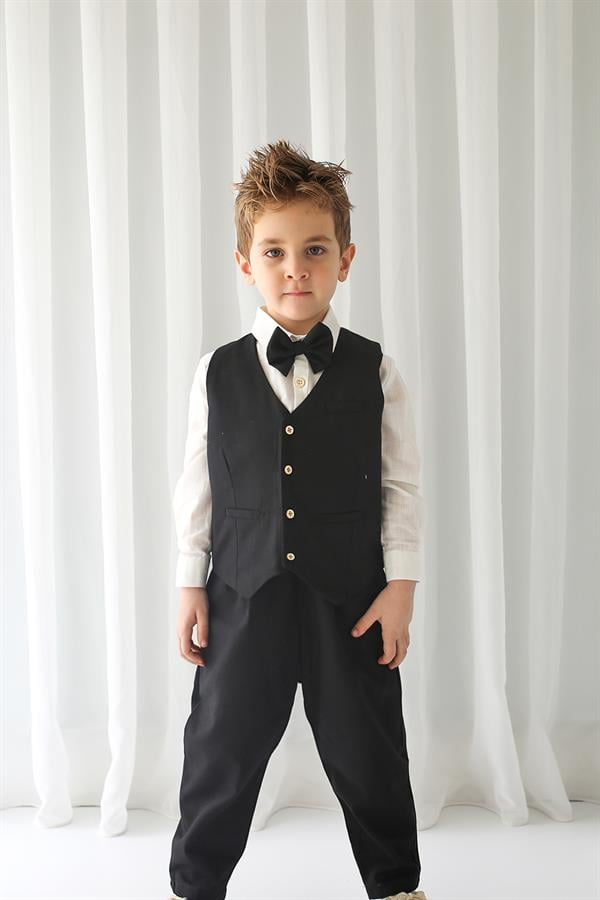 Siyah Keten Yelek+Siyah Pantolon + Gömlek+Papyon