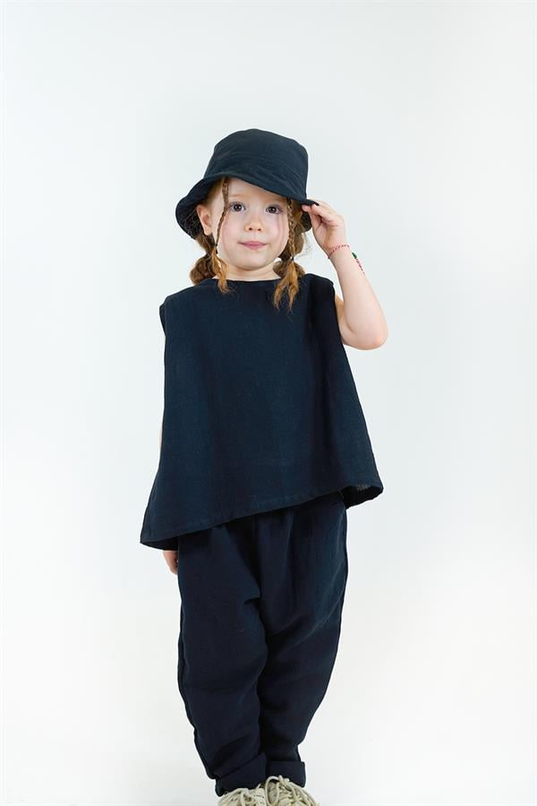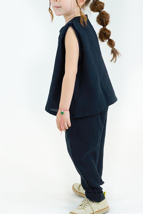 - Siyah Müslin Carrot Pantolon + Siyah Müslin Kolsuz Bluz