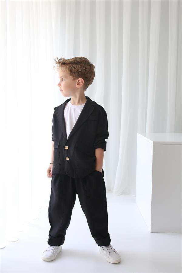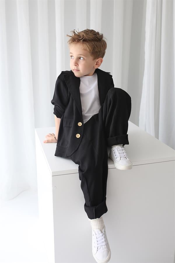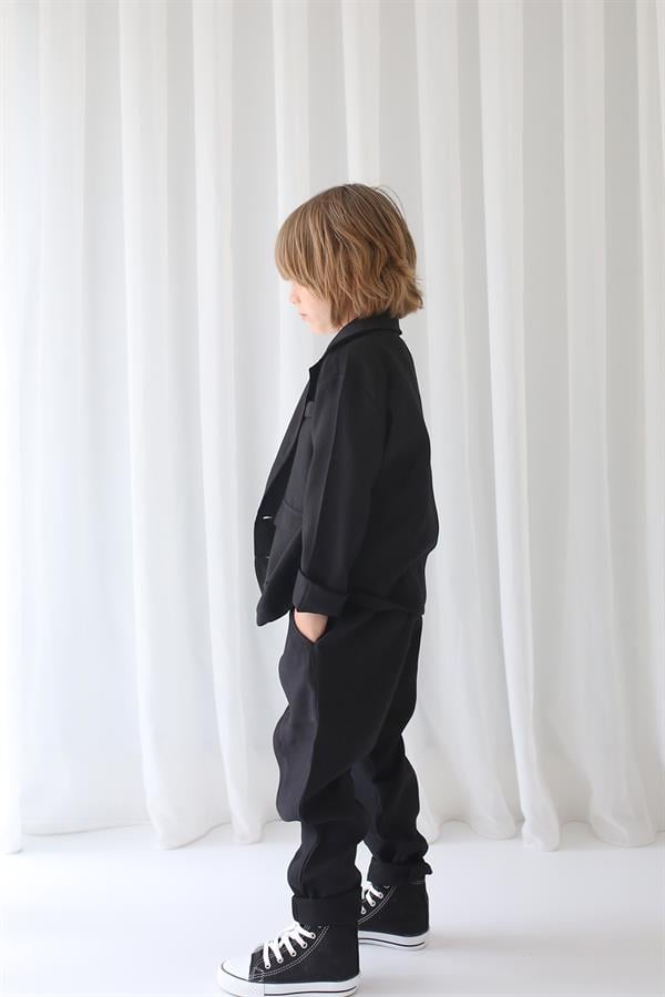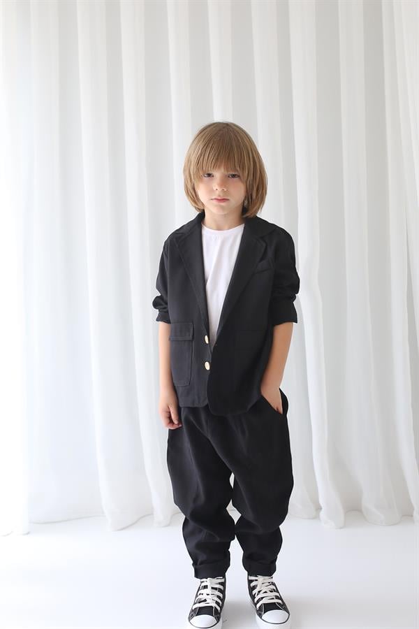 Siyah Tensel Rahat Ceket + Siyah Tensel Carrot Pantolon