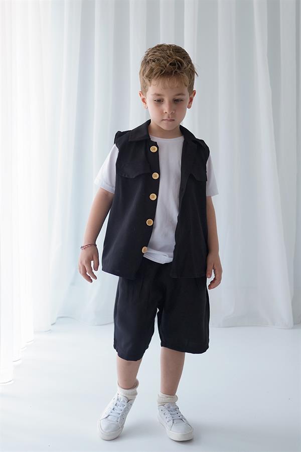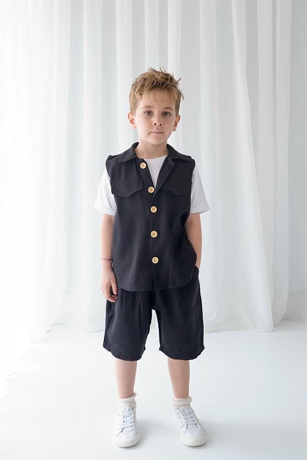 Siyah Tensel Spor Yelek + Siyah Tensel Soho Şort