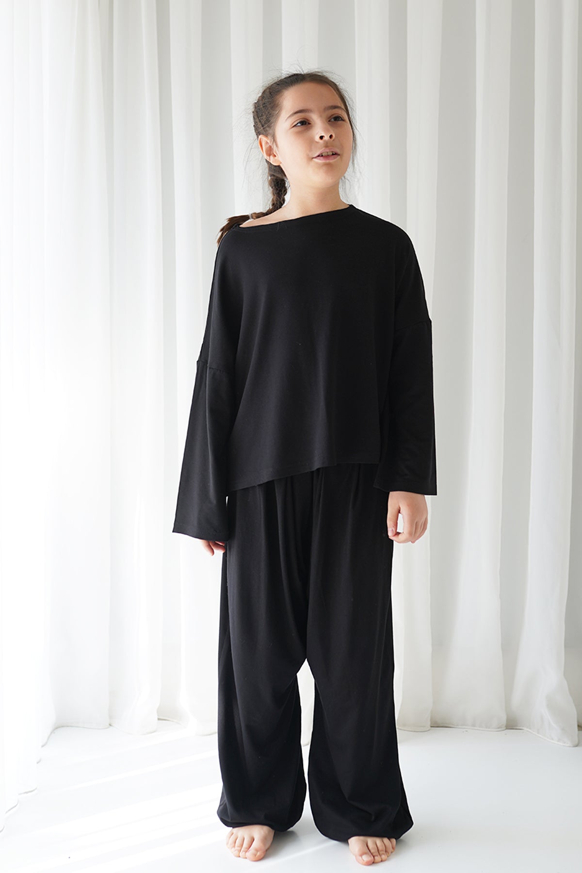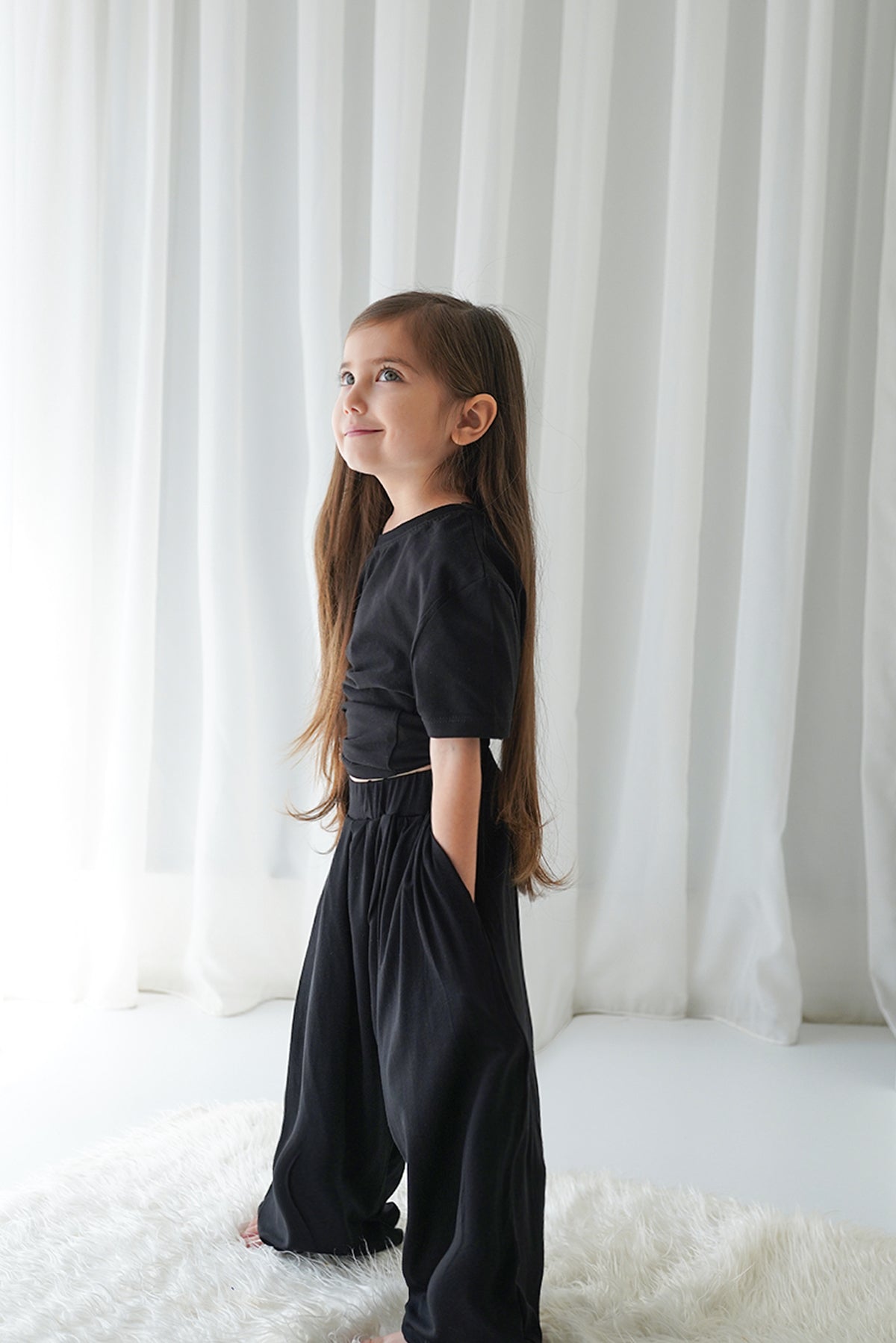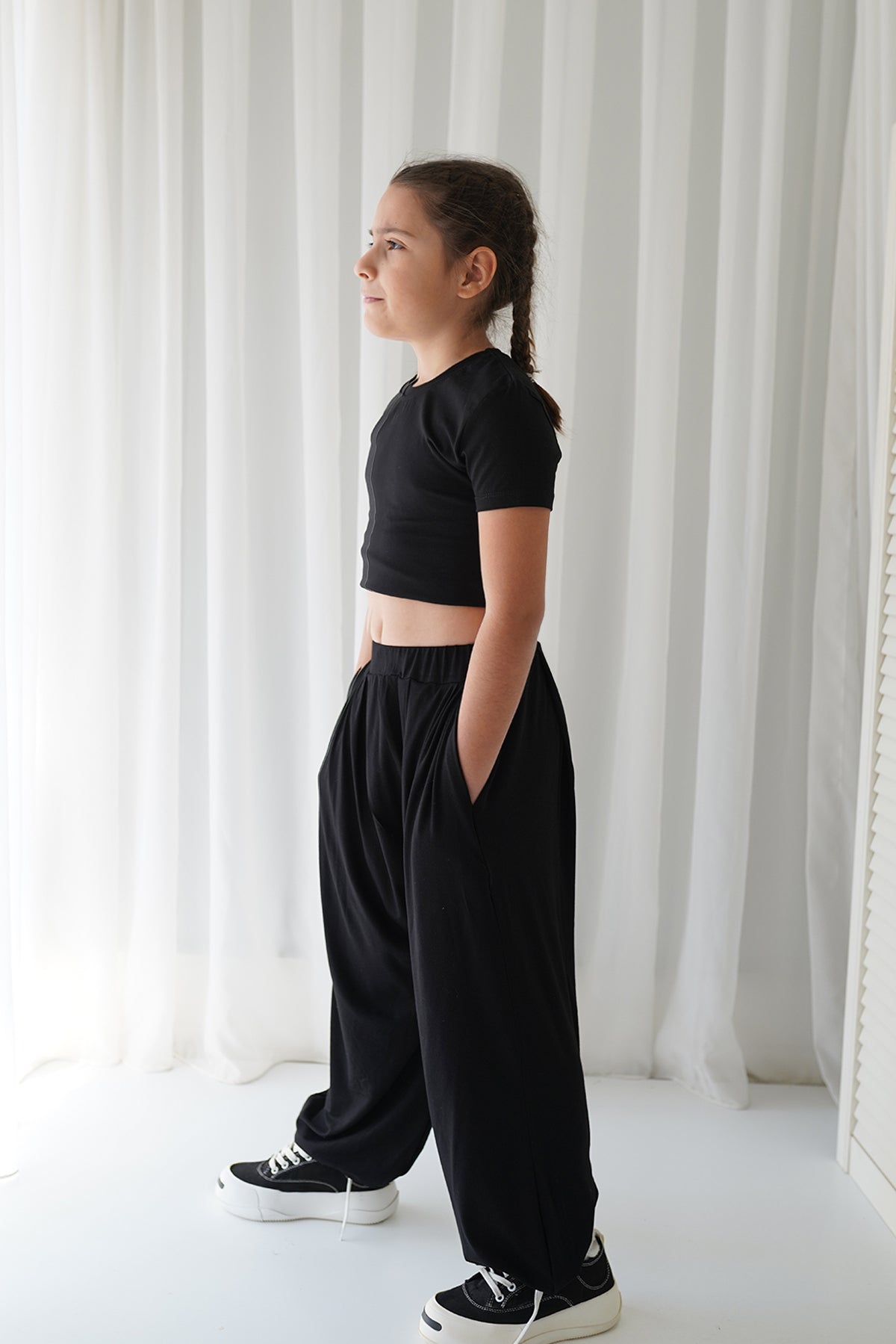 Siyah Viskon Flowy Pant - Kız Çocuk
