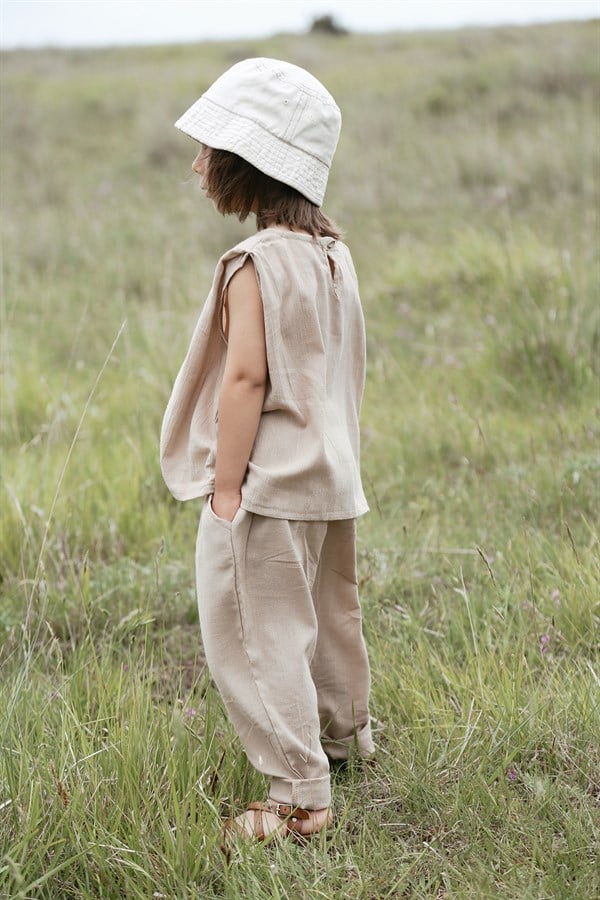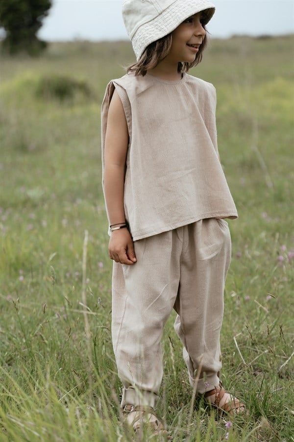 Vizon Müslin Carrot Pantolon + Vizon Müslin Kolsuz Bluz