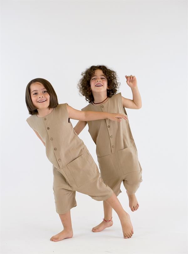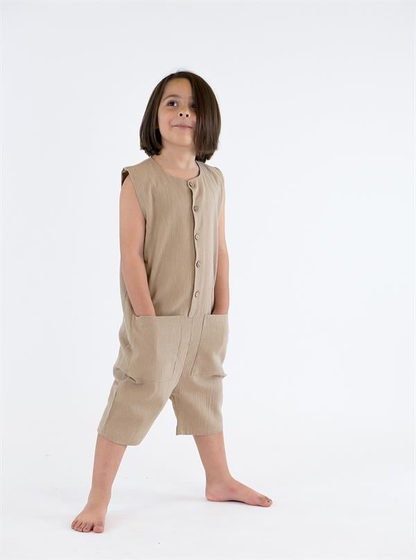 Vizon Şile Bezi Kolsuz Cepli Şort Tulum